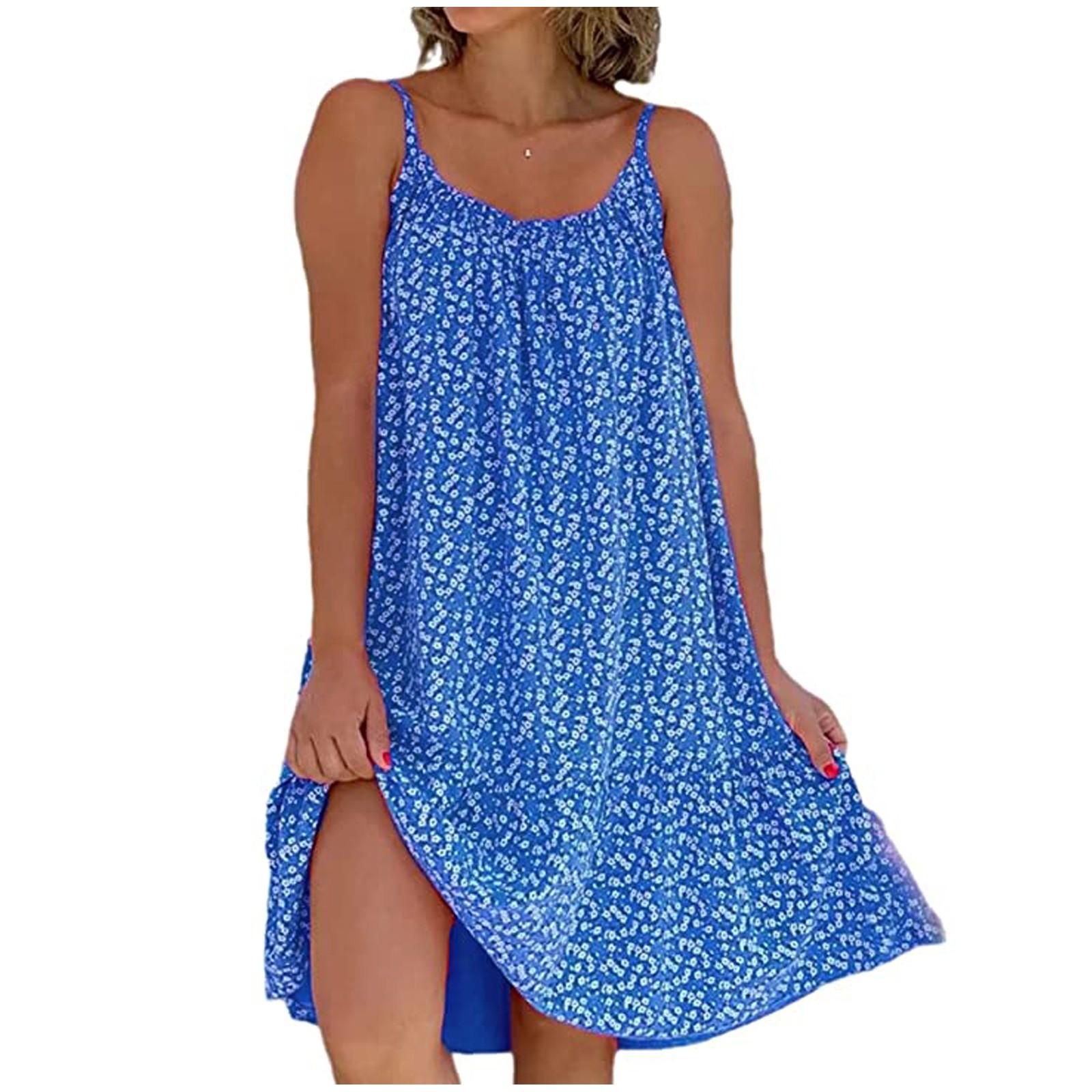 Женская мода повседневное однотонное платье на бретельках с круглым вырезом и принтом в горошек M синий