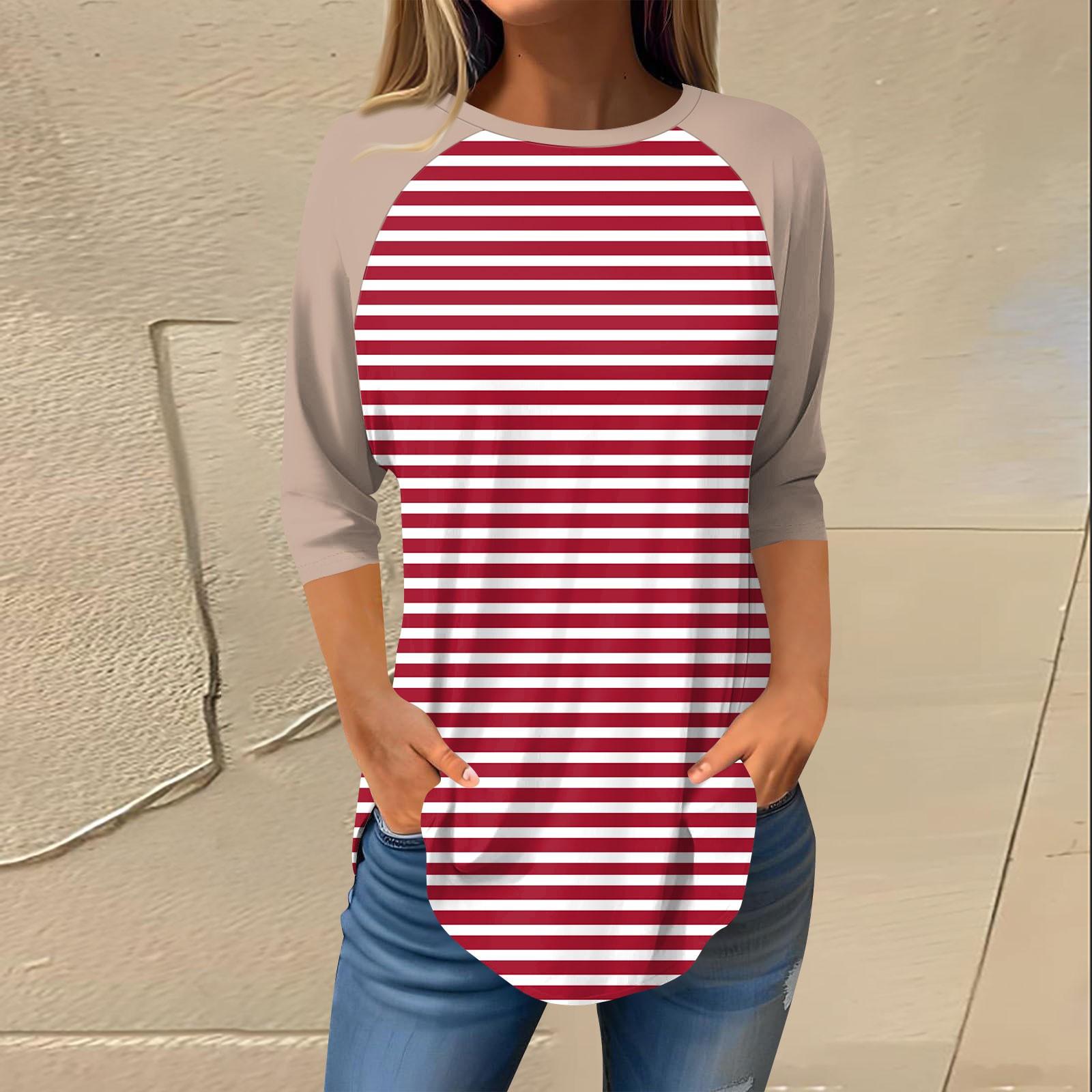 Женская мода, повседневные топы на выход, ретро-принт, пуловер с рукавом реглан, рукавом 3/4, блузки, туника с круглым вырезом XL красный