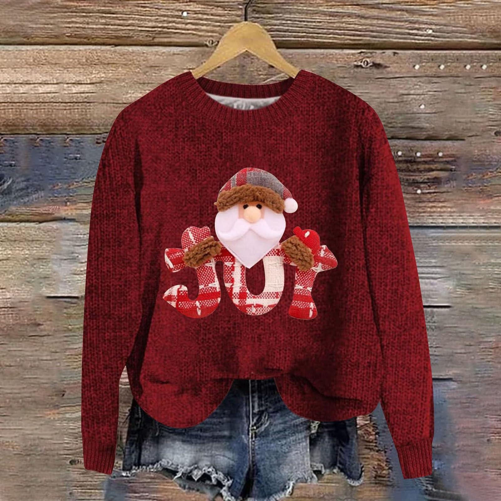 Женская мода повседневный длинный рукав рождественский принтованный воротник шерстяной трикотажный пуловер топ XL винный