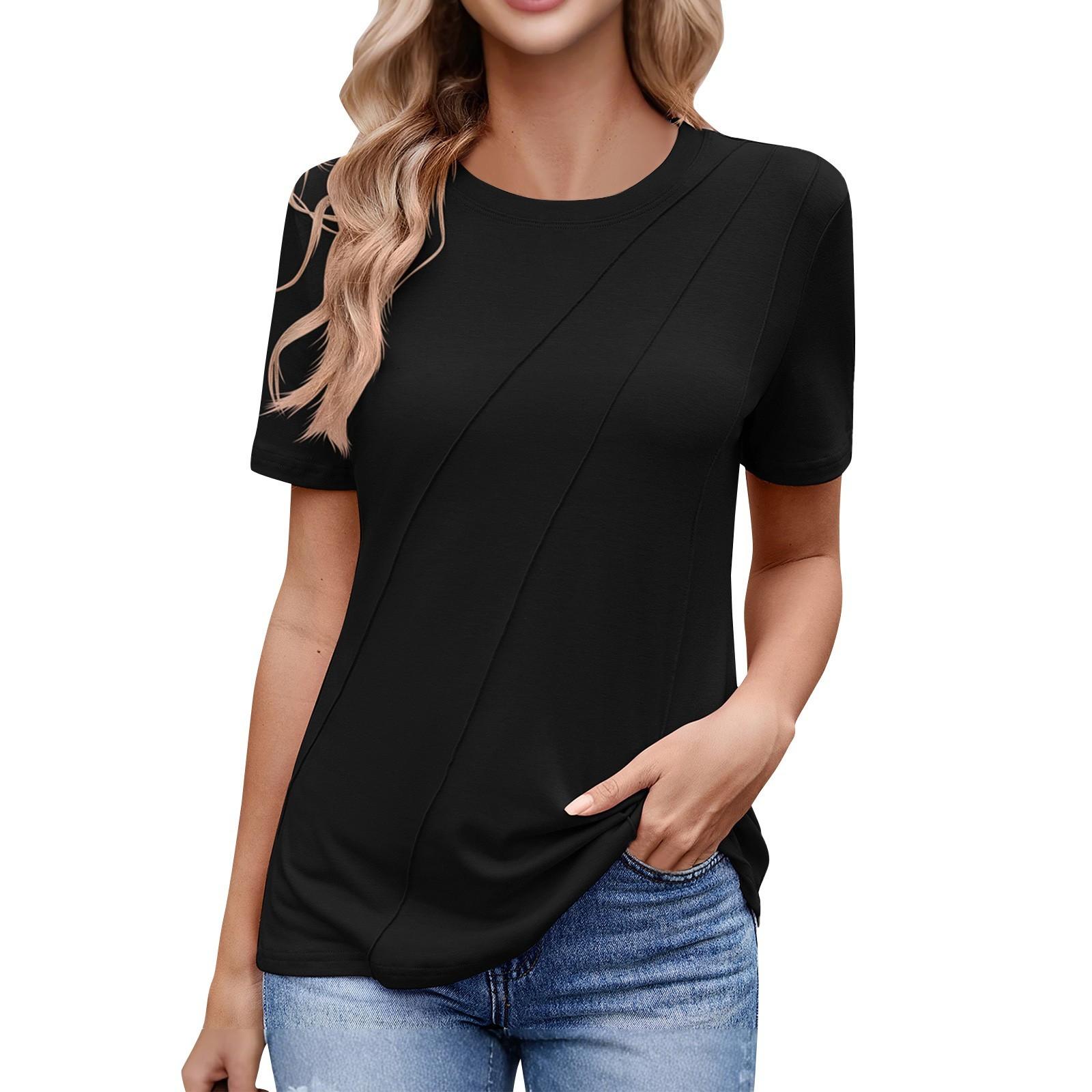 Женская мода повседневный комфорт сексуальный однотонный круглый вырез короткий рукав топ L чёрный