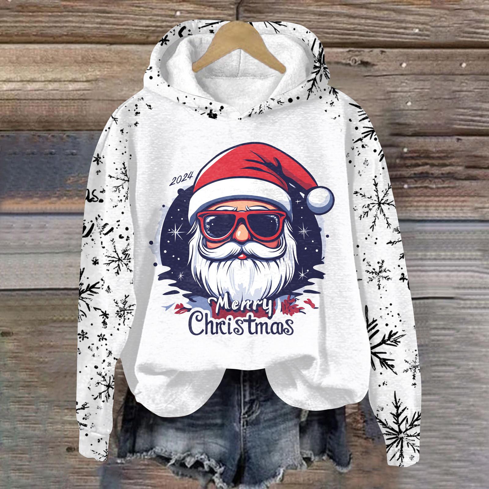 Женская мода повседневный пуловер с рукавами-заглушками и рождественским принтом с капюшоном S белый