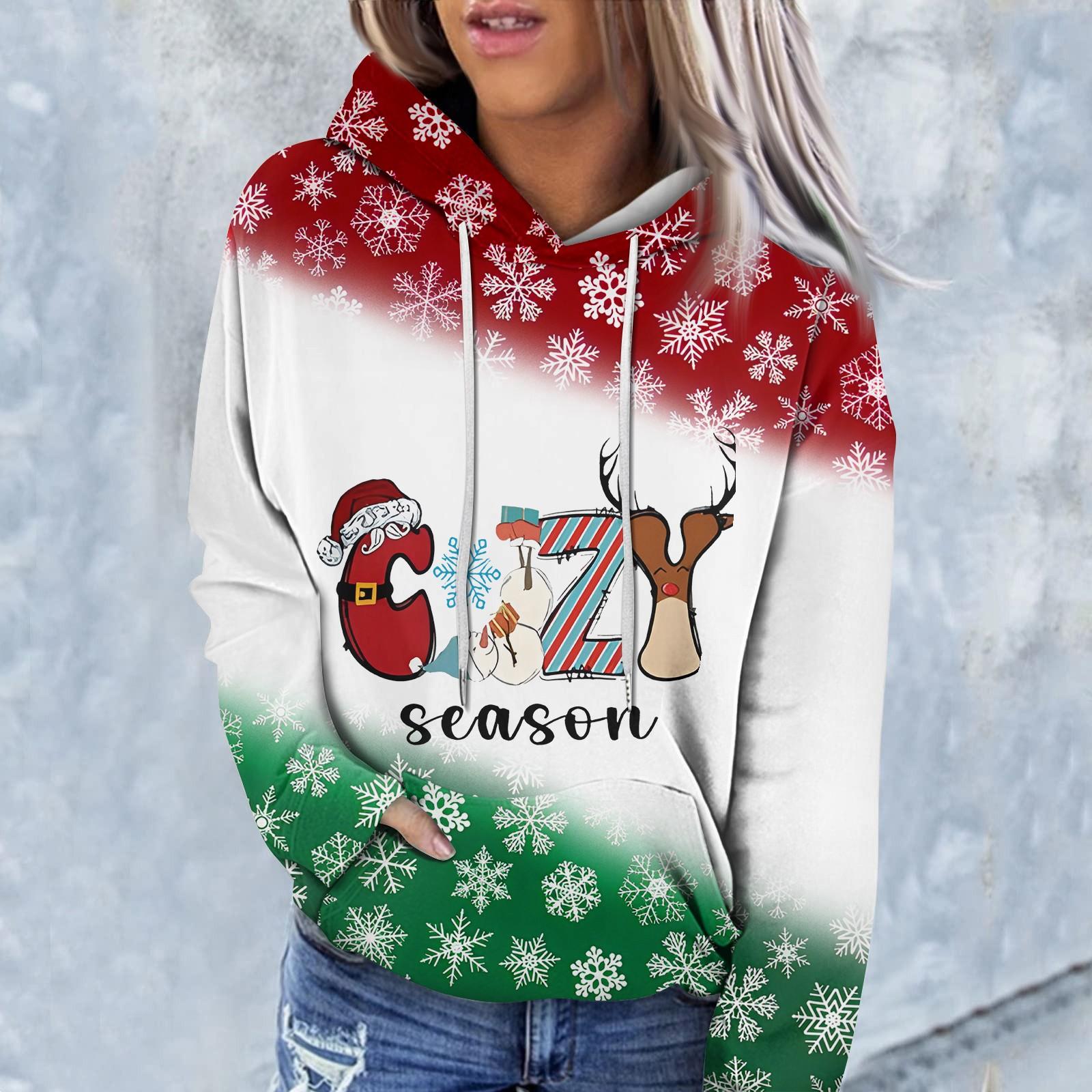 Женская мода повседневный рождественский принтованный пуловер с круглым вырезом и длинным рукавом свитшот S киноварь
