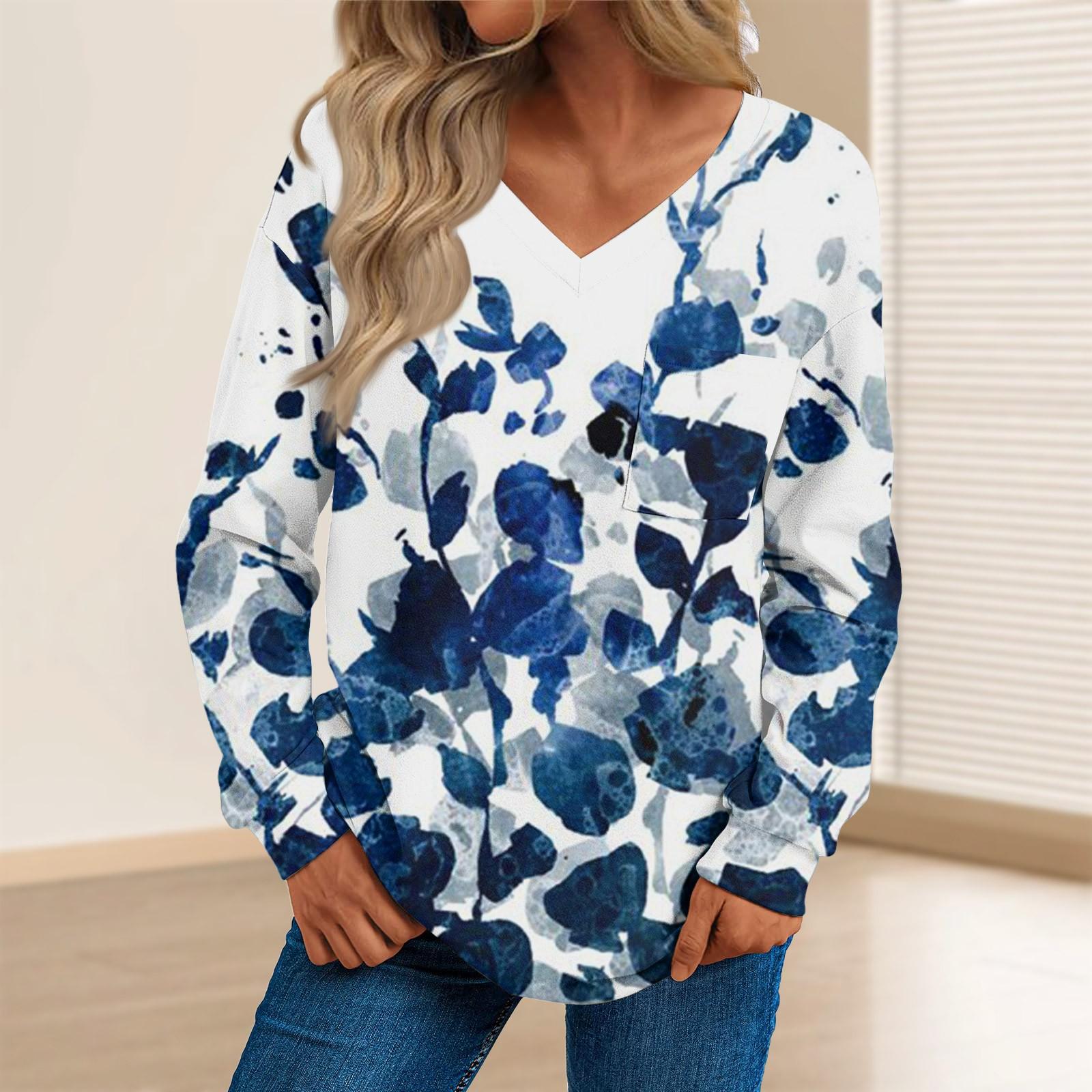 Женская мода повседневный свитер с длинным рукавом и принтом V-образным вырезом XL