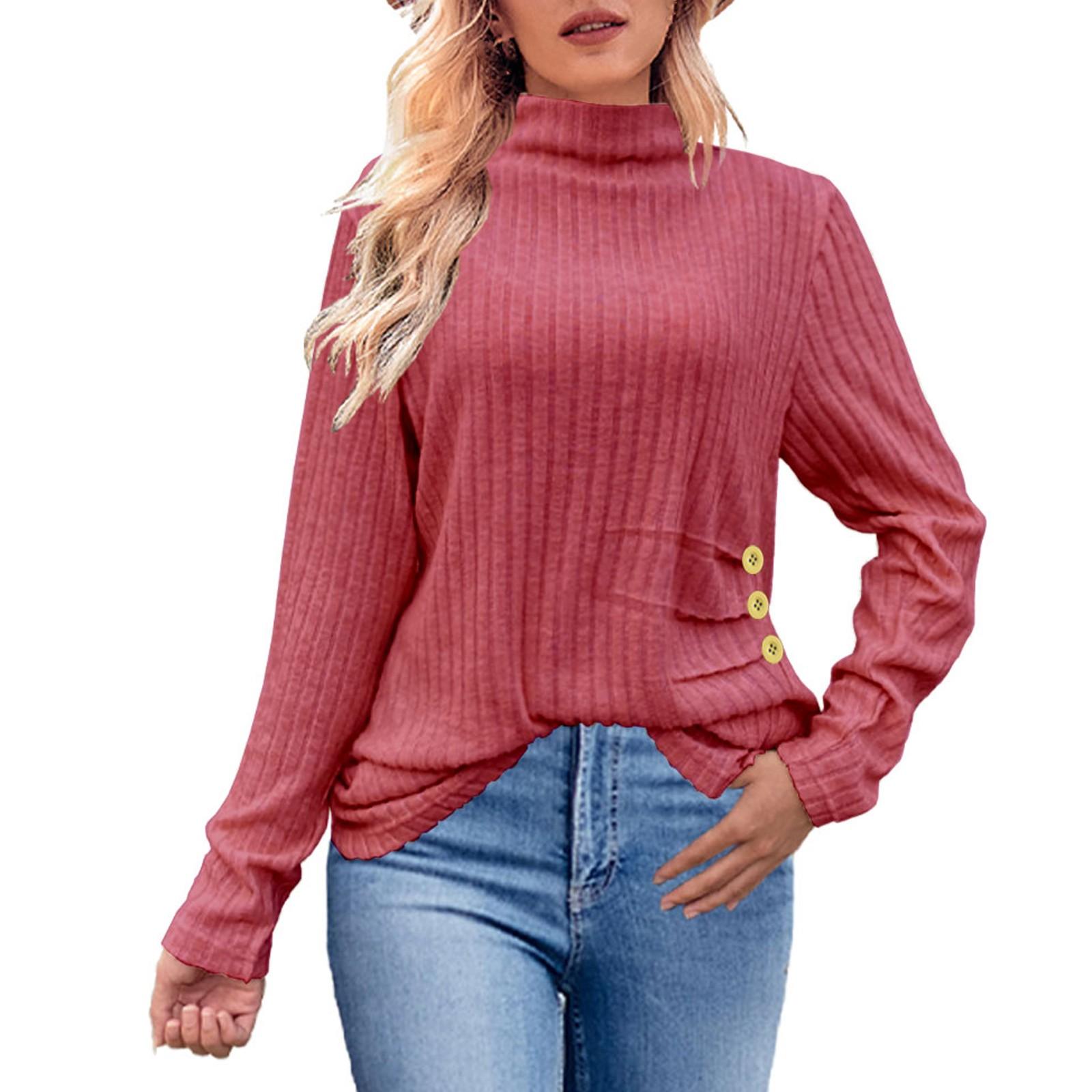 Женская мода повседневный шерстяной полосатый трикотажный топ с высоким воротом и оборками по бокам на пуговицах XL винный