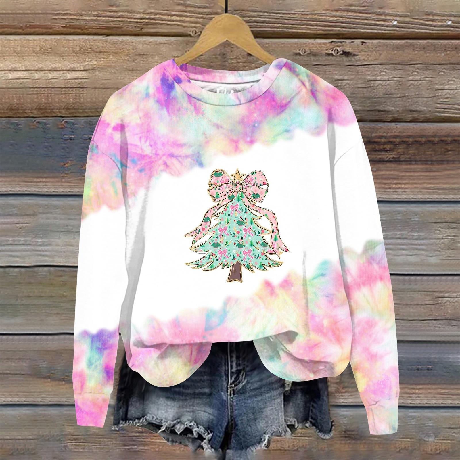 Женская мода рождественский принт длинный рукав свободный круглый вырез толстовка топ осень XXXXXL