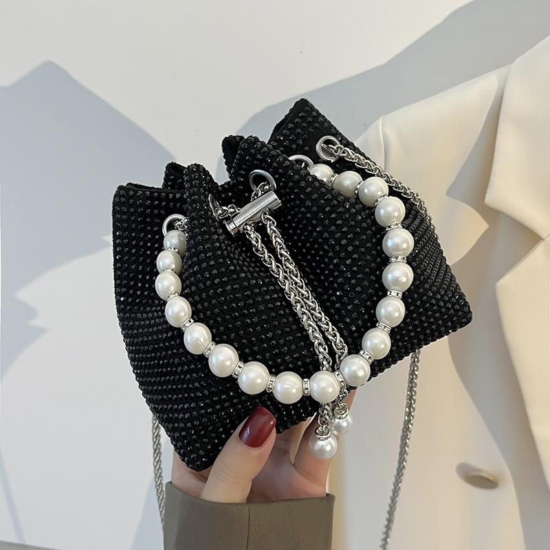 Женская мода, сумки-ведра со стразами и бриллиантами, ретро жемчужная цепочка, женские сумки на плечо, блестящие маленькие сумки через плечо, женские сумки