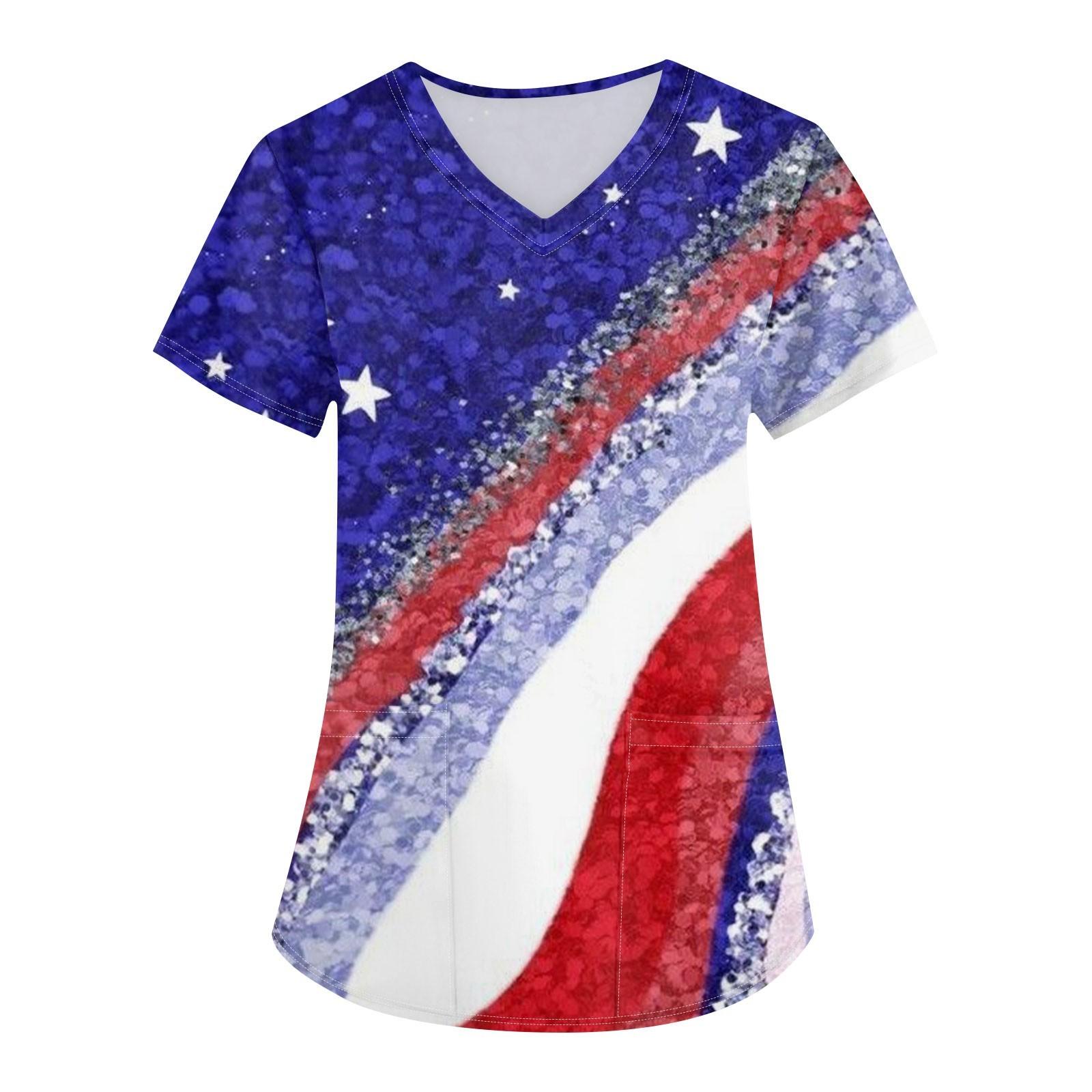 Женская мода с коротким рукавом и карманами, рабочая одежда в полоску, рабочая одежда с принтом, топы XL белый