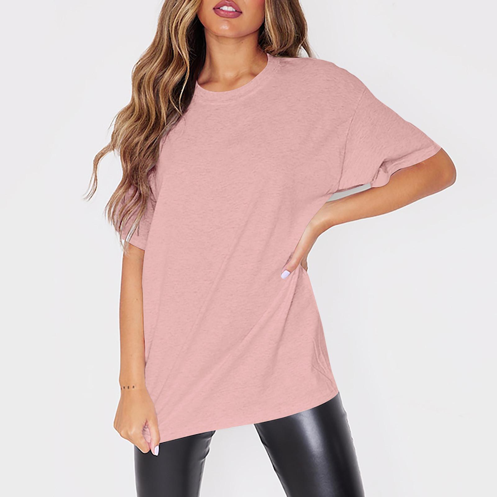 Женская мода с круглым вырезом и коротким рукавом, рабочая одежда с карманами, топы с принтом, летние топы для женщин M розовый
