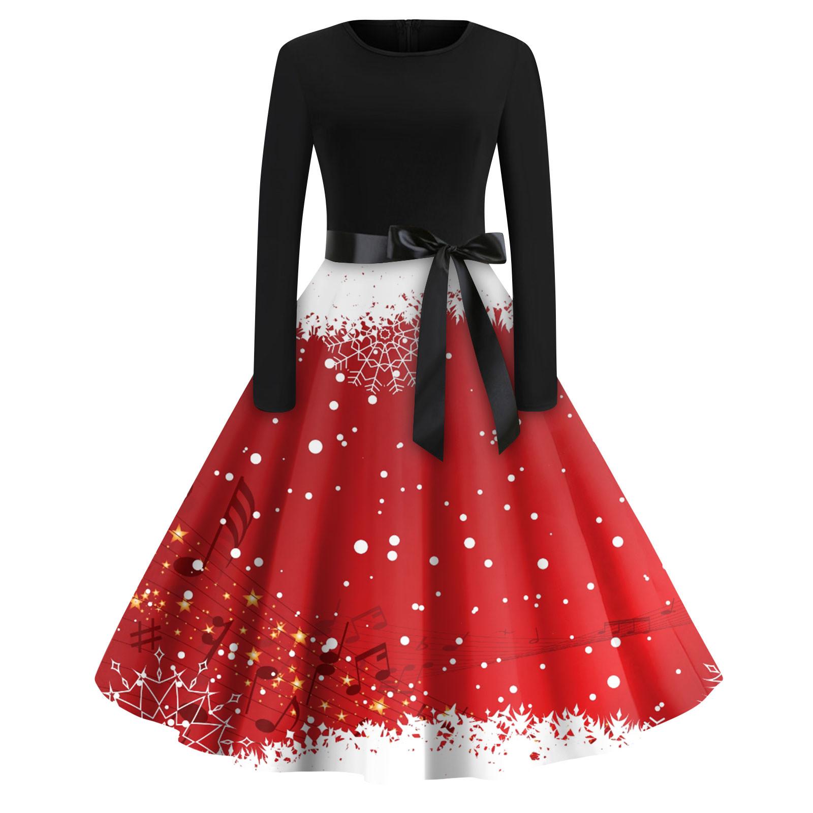 Женская мода с круглым вырезом, повседневные тонкие рождественские платья с длинным рукавом и принтом S белый