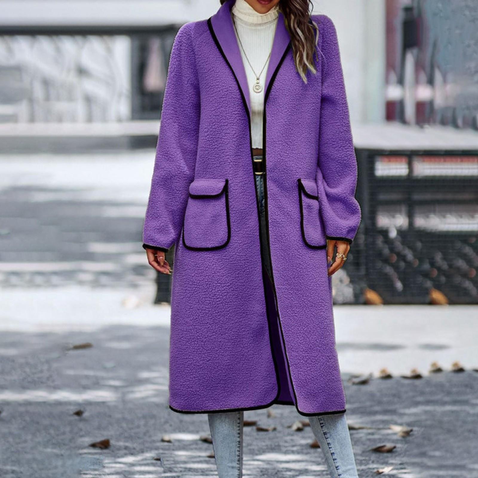 Женская мода с лацканами сплошной цвет с длинным рукавом из овечьей шерсти повседневное сто длинное пальто XXL фиолетовый