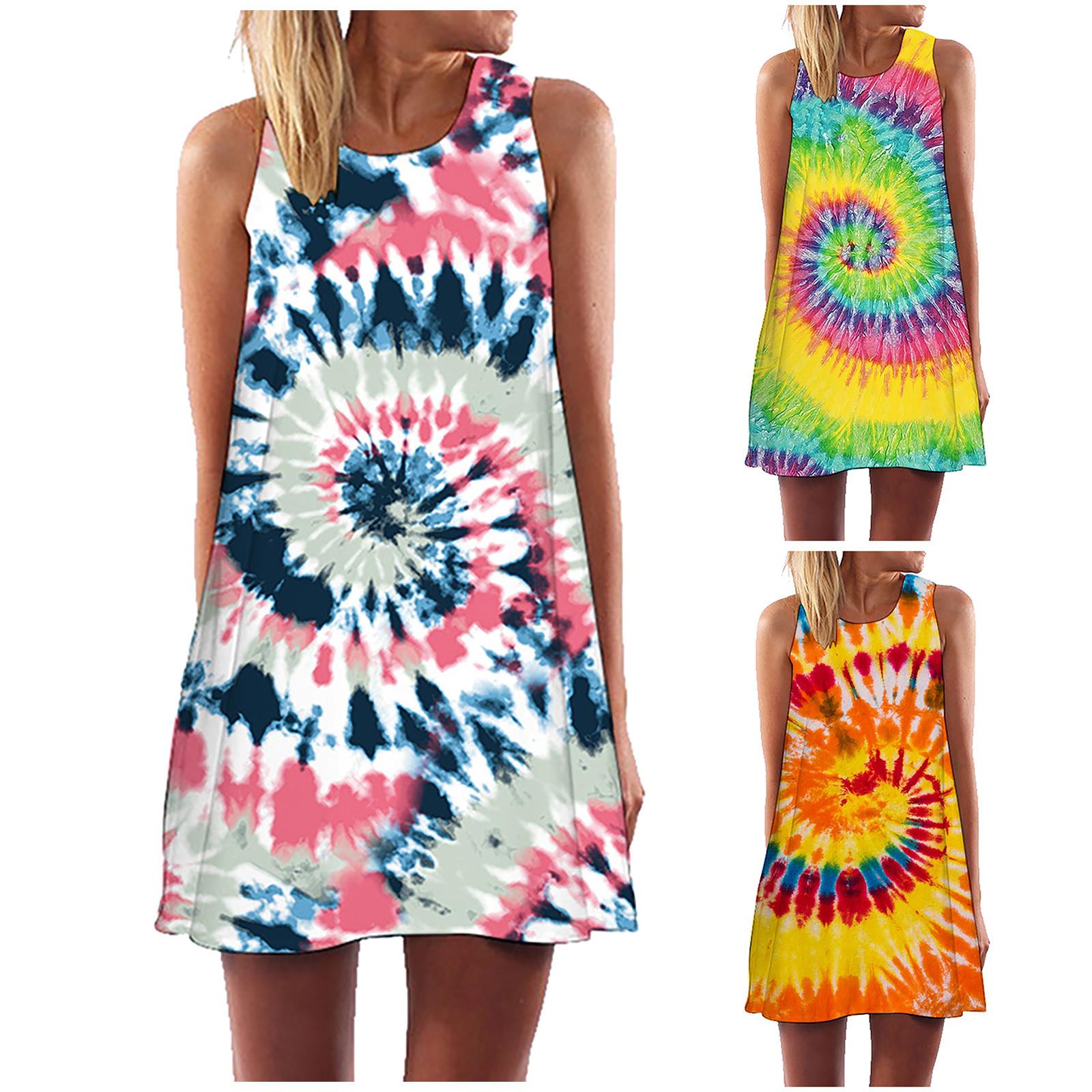 Женская мода с принтом, повседневные свободные платья без рукавов длиной до колена