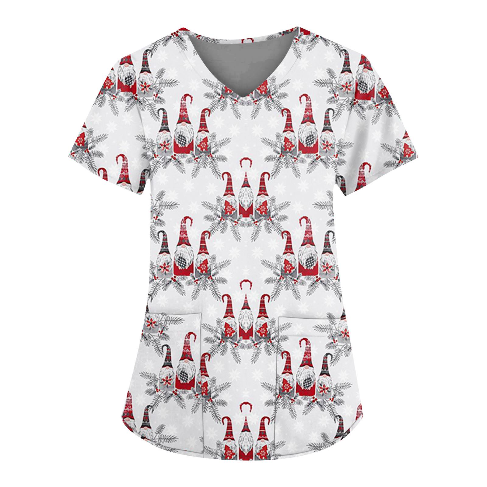Женская мода с v-образным вырезом, короткими рукавами и карманами, топы с рождественским принтом XL белый