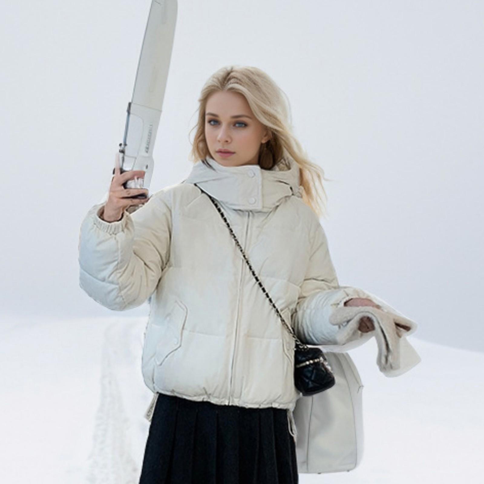 Женская мода тонкий утолщенный короткий молния с капюшоном зимнее теплое хлопковое пальто пуховик XL белый
