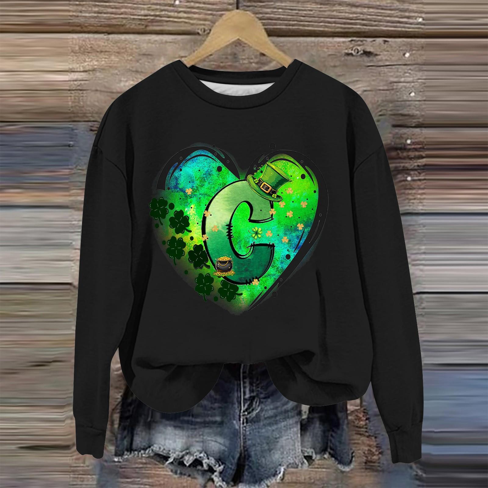 Женская мода ул.. День Святого Патрика Печатный Длинный Рукав Свободный Круглый Вырез Толстовка Топ Осень XXXXXL