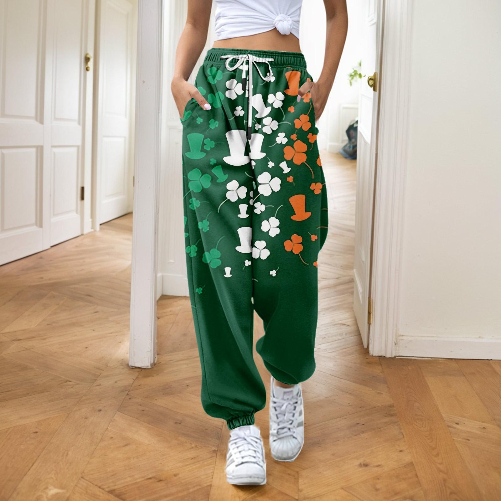 Женская мода ул.. День Святого Патрика свободные повседневные спортивные штаны с завязками и принтом L армия зеленый