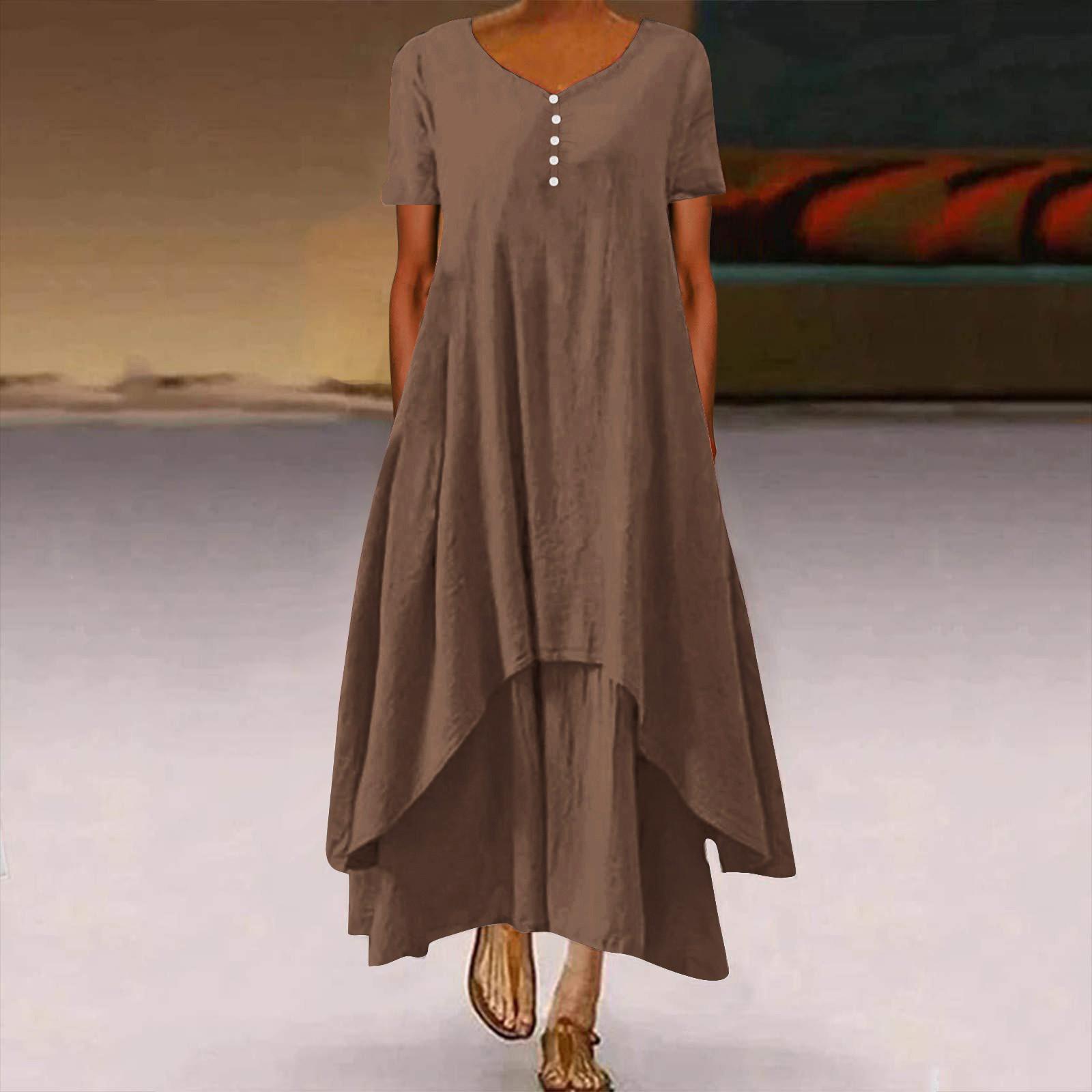 Женская мода Boho сплошной цвет с коротким рукавом свободное повседневное нерегулярное платье XL
