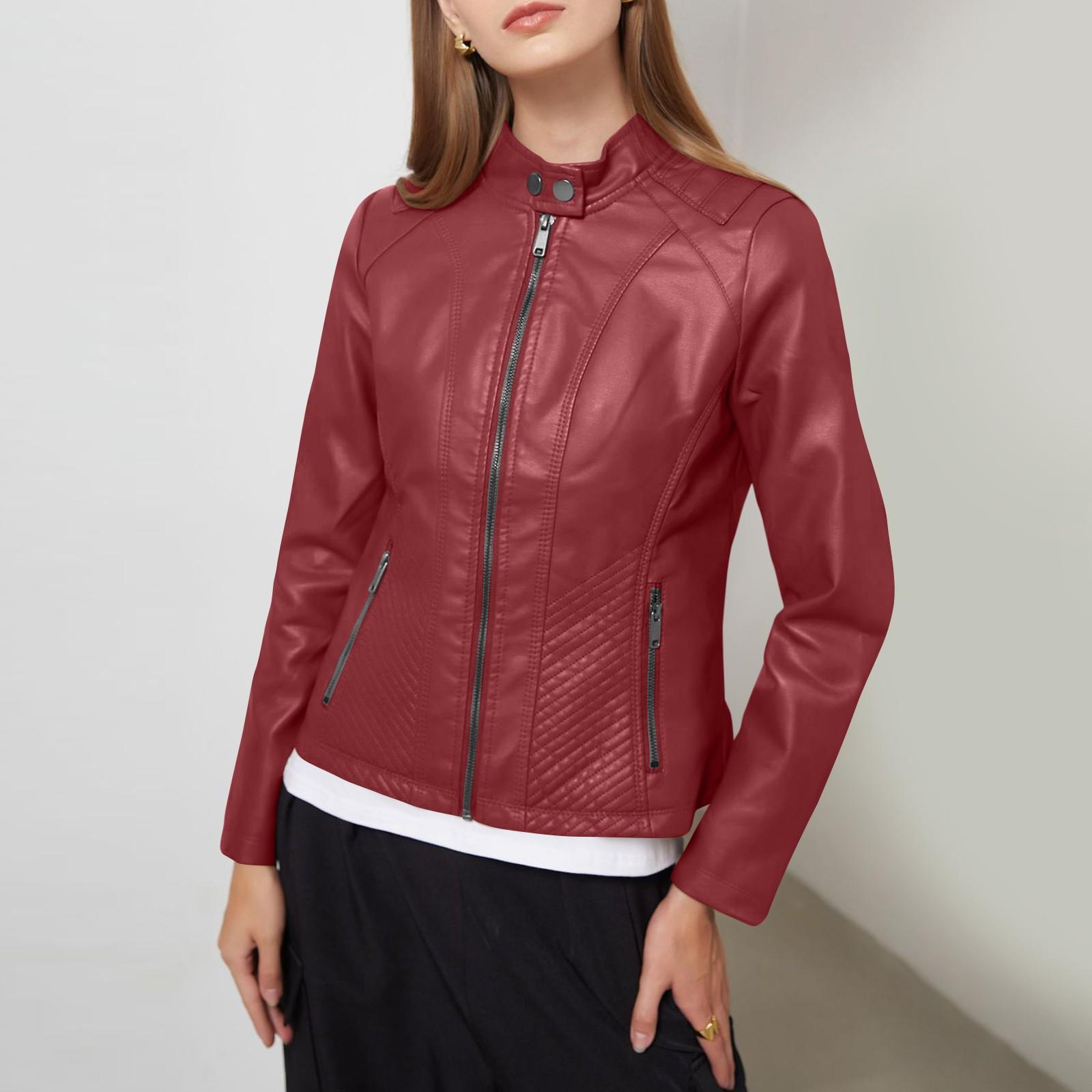 Женская модная кожаная куртка, облегающее повседневное маленькое пальто, одежда для мотоциклистов XL винный
