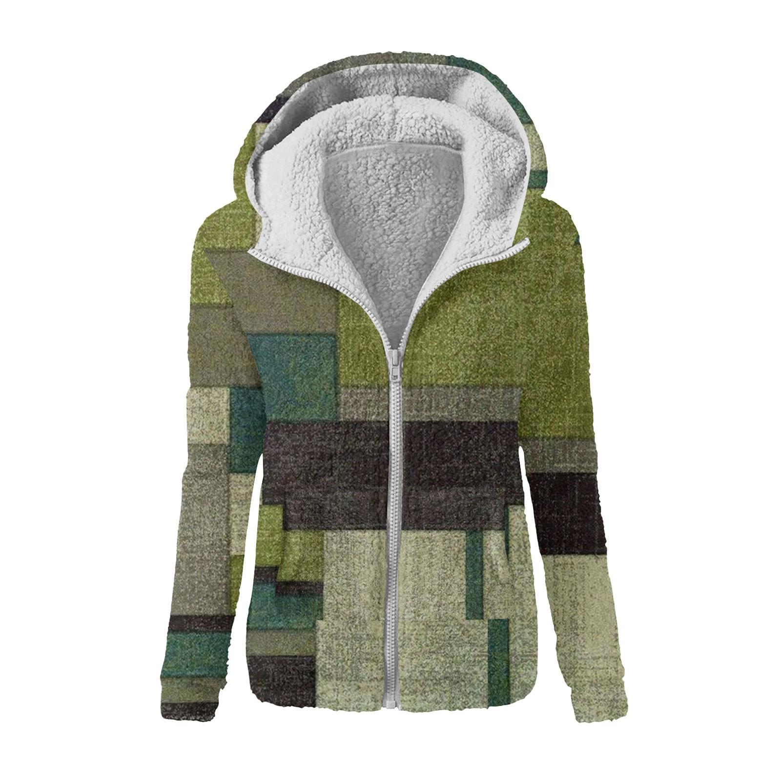 Женская модная куртка с геометрическим принтом в стиле пэчворк с капюшоном и плюшевым верхом на молнии L армия зеленый