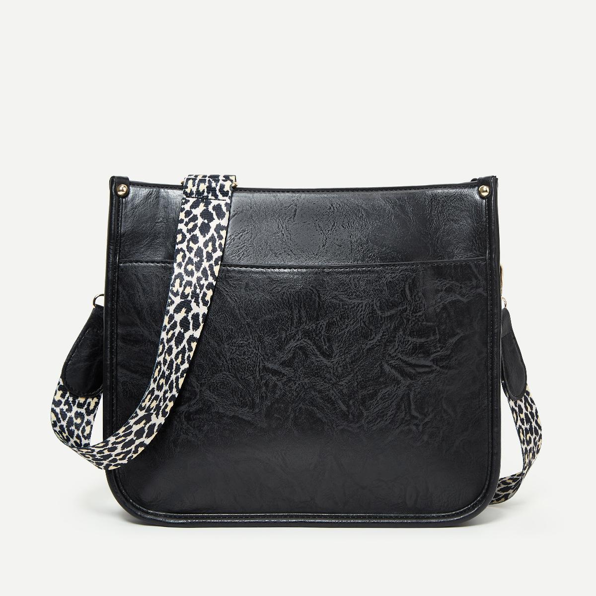 Женская модная леопардовая сумка через плечо, мягкая сумка из искусственной кожи, женская сумка-тоут, большая вместительная сумка на ремне чёрный