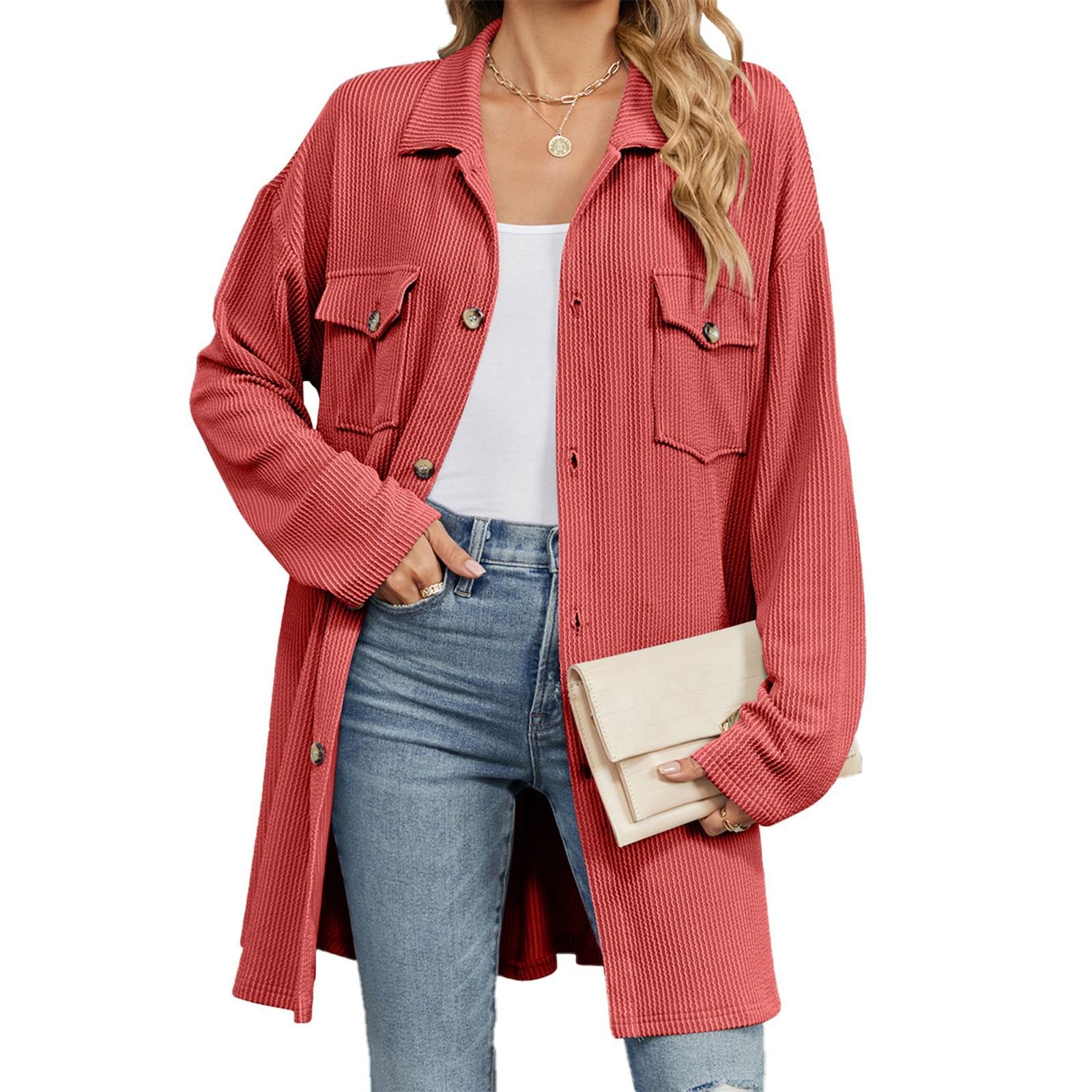 Женская модная однотонная свободная куртка с карманом на пуговицах и длинными рукавами XL красный