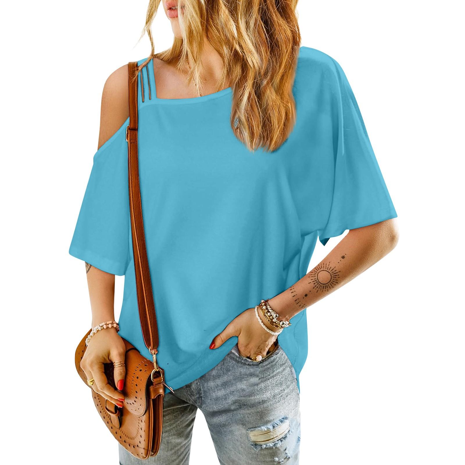 Женская модная однотонная однотонная сексуальная однотонная футболка со средним рукавом и открытыми плечами XL