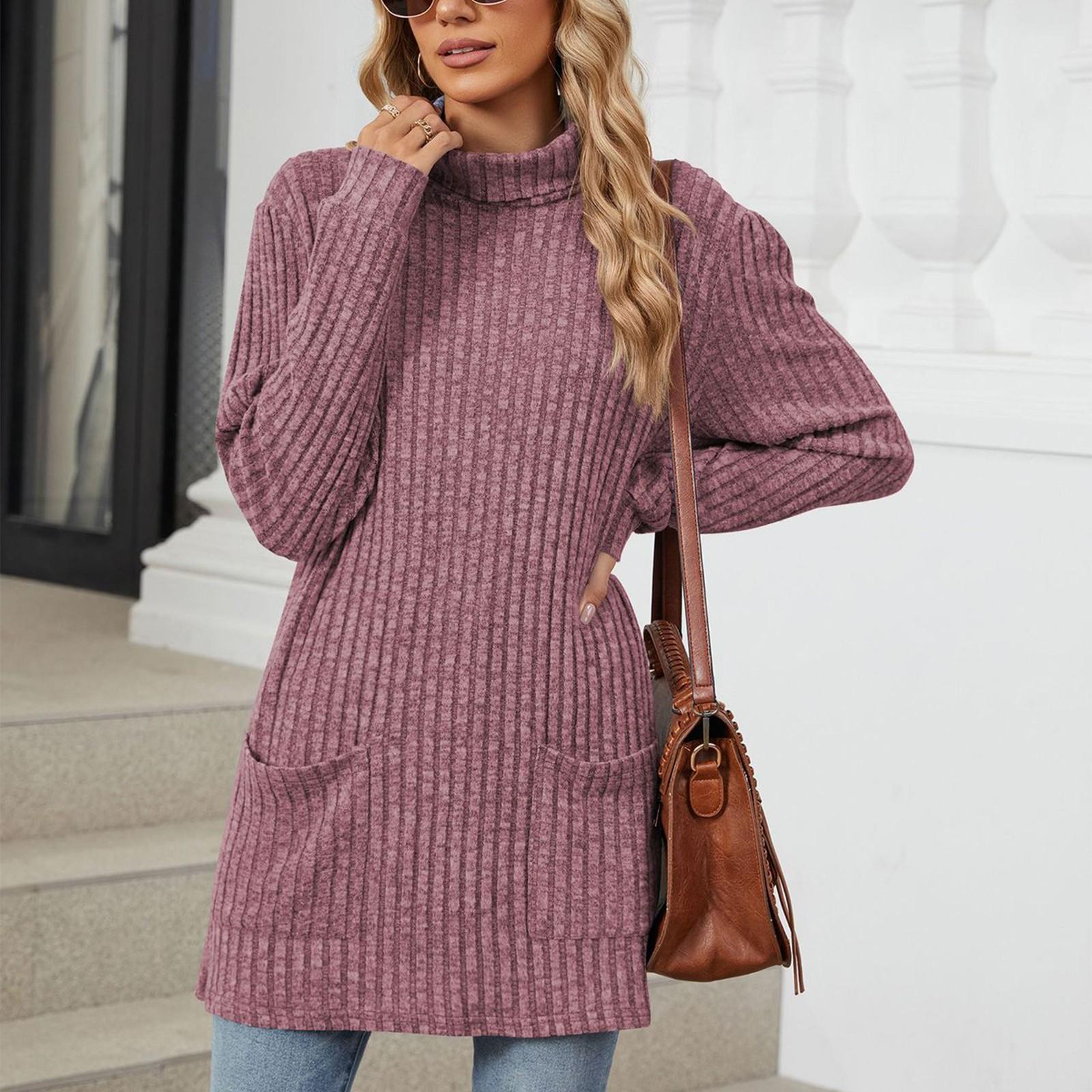 Женская модная однотонная футболка с высоким воротом и длинными рукавами и широким подолом с разрезом XL фиолетовый