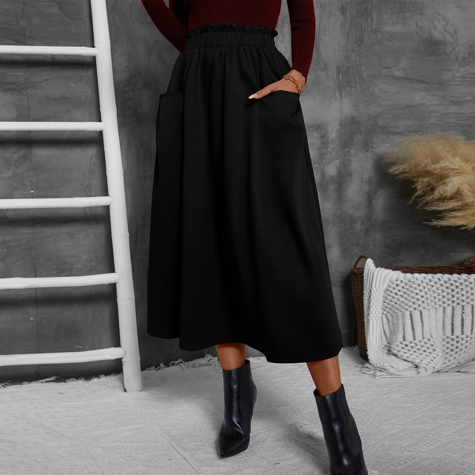Женская модная однотонная юбка-трапеция с эластичным поясом и свободными карманами XL чёрный