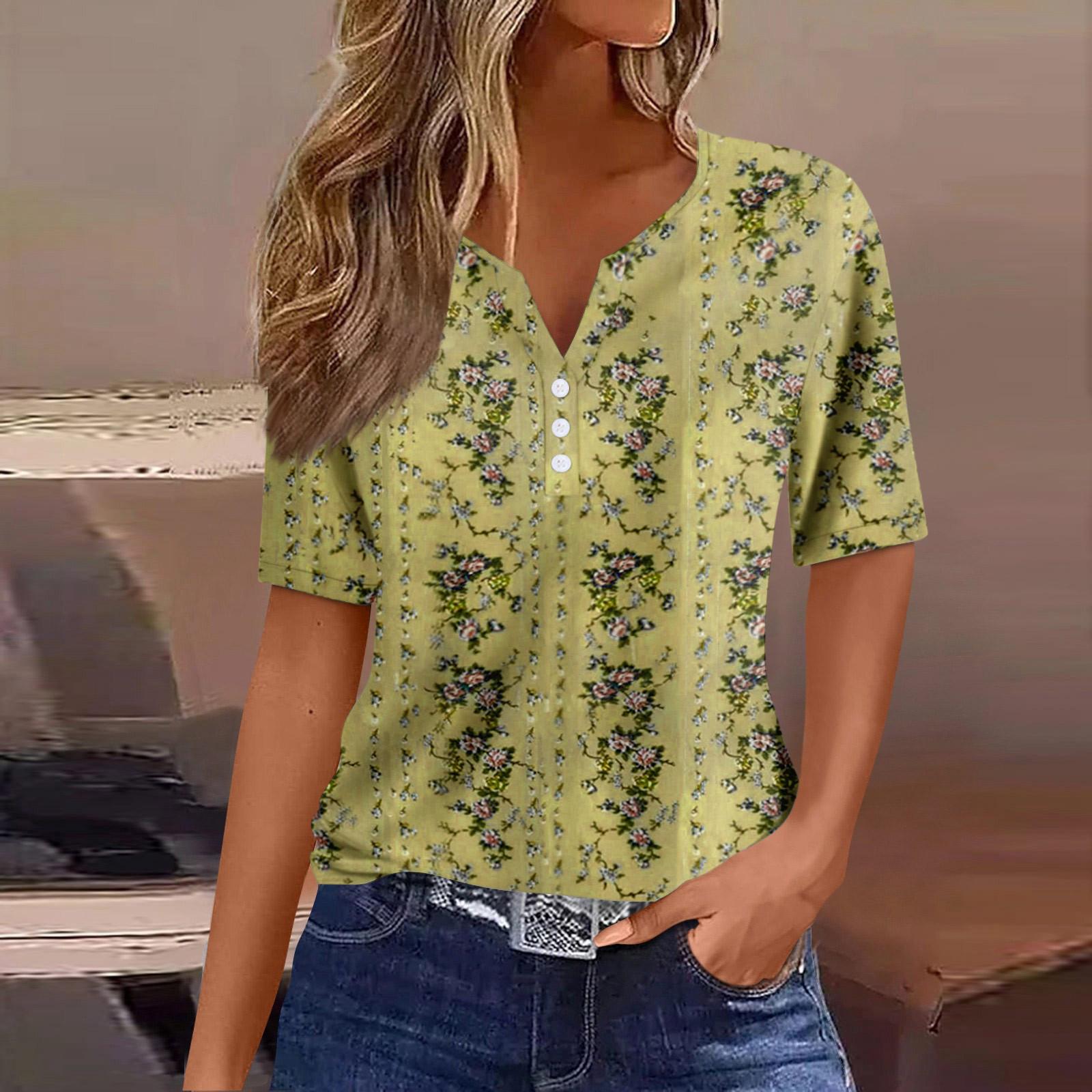 Женская модная повседневная винтажная футболка с v-образным вырезом и коротким рукавом с декоративными пуговицами, топ XL