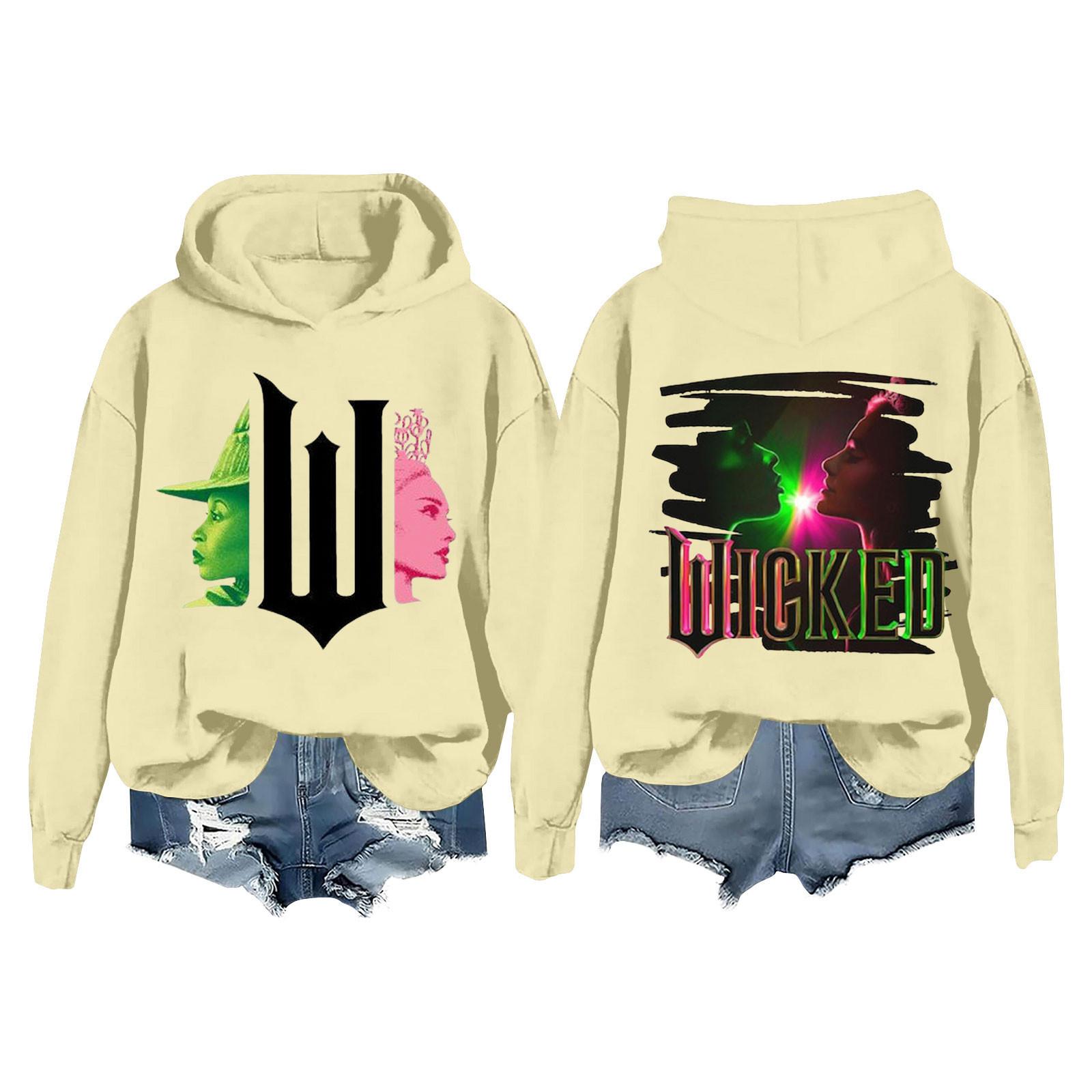 Женская модная повседневная кофта с длинными рукавами и принтом ведьмы с капюшоном XL бежевый