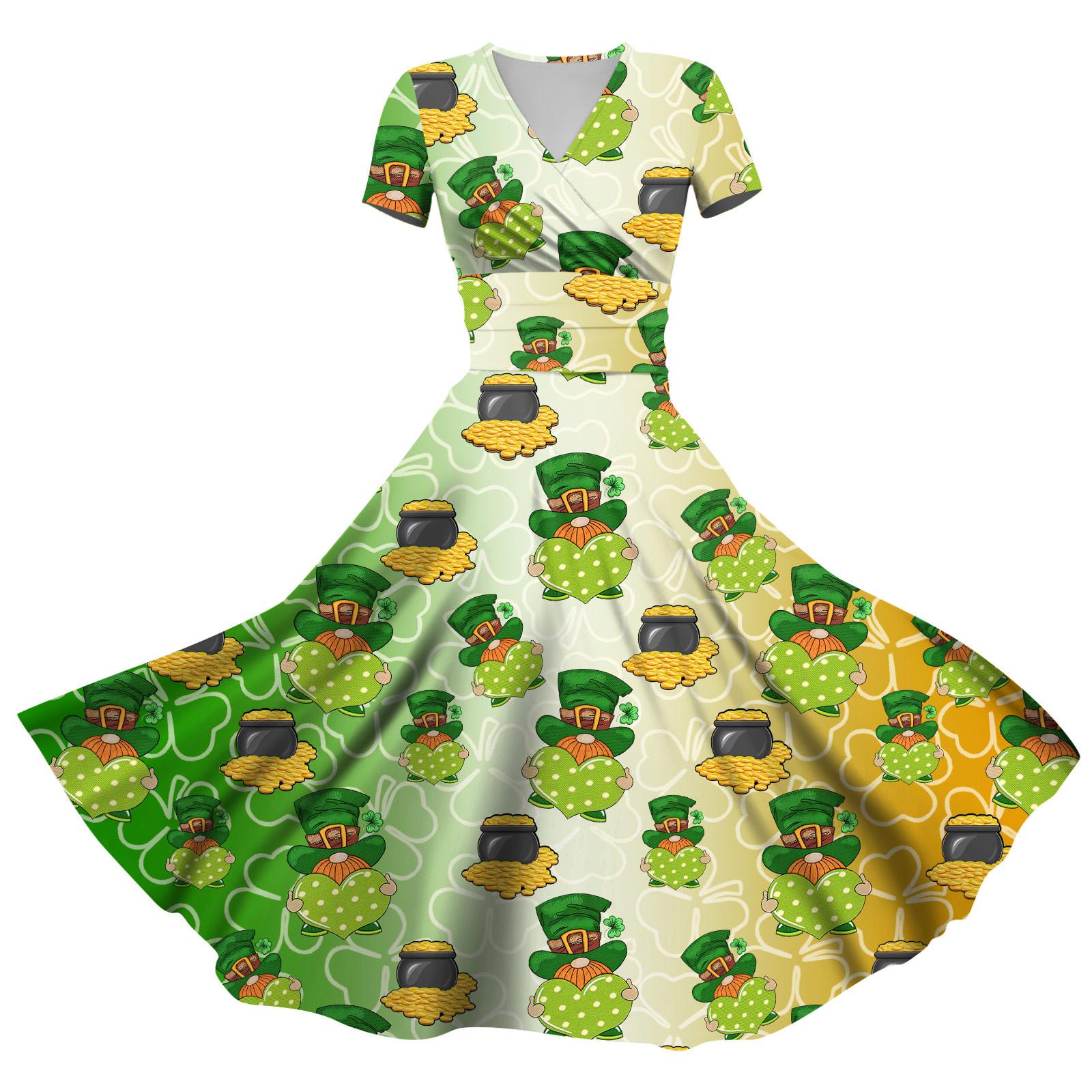 Женская модная и повседневная одежда. Платье с принтом Патрика и короткими рукавами, карманами и перекрученной отделкой L