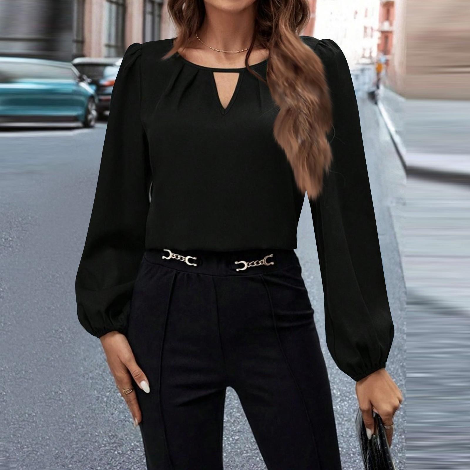 Женская модная повседневная однотонная атласная рубашка, повседневный плиссированный топ с длинным рукавом S чёрный