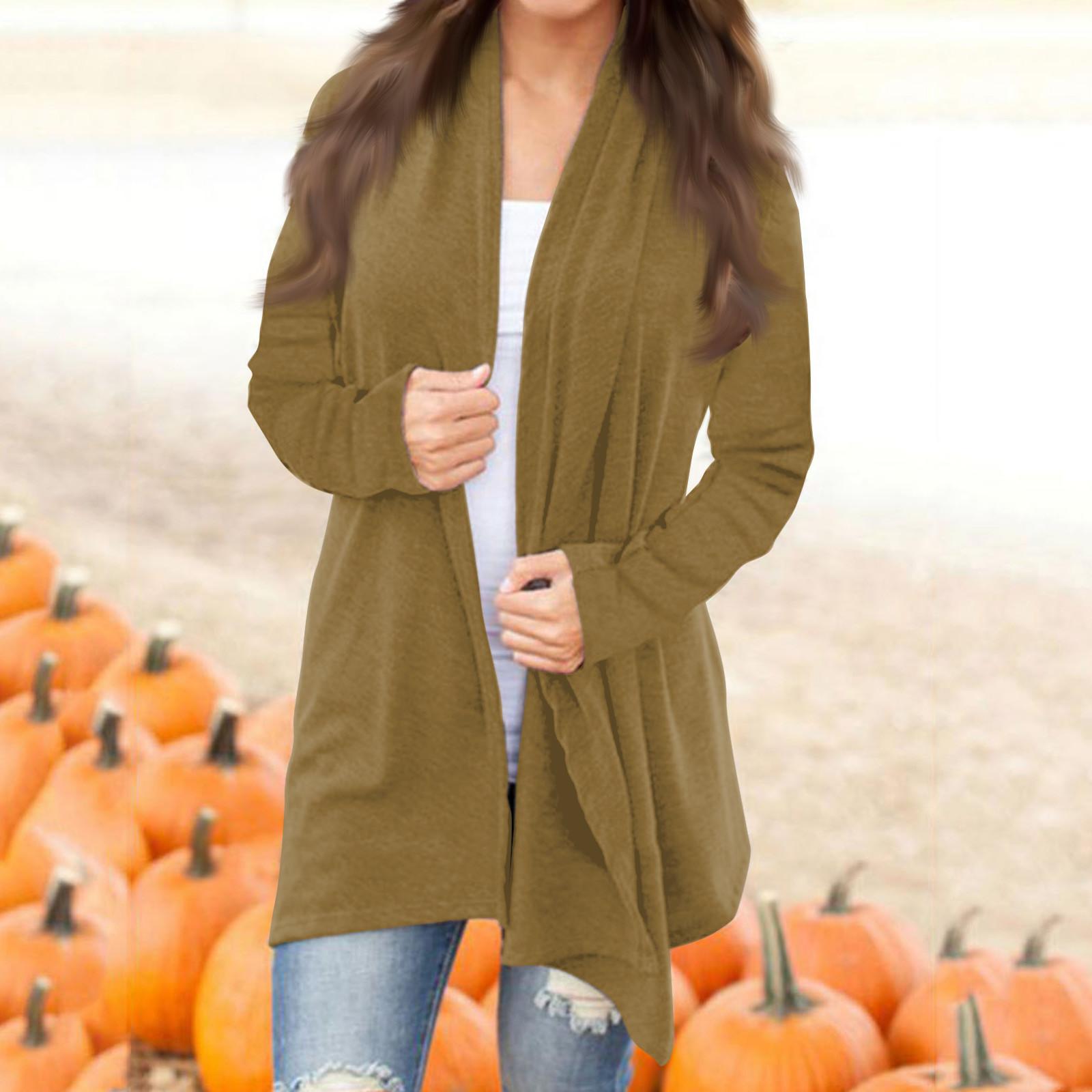 Женская модная повседневная однотонная куртка-кардиган средней длины с длинными рукавами XXL коричневый