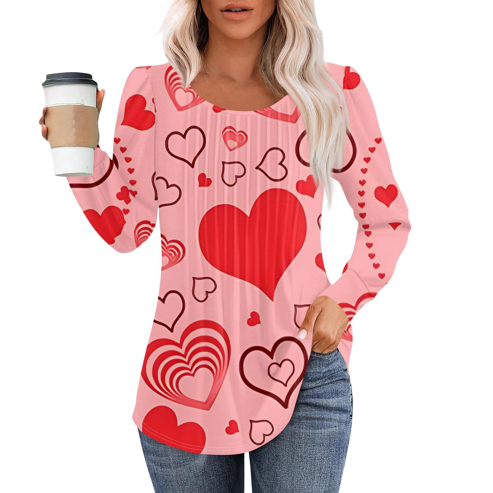 Женская модная повседневная плиссированная футболка с круглым вырезом и принтом «любовь» с длинными рукавами XL красный