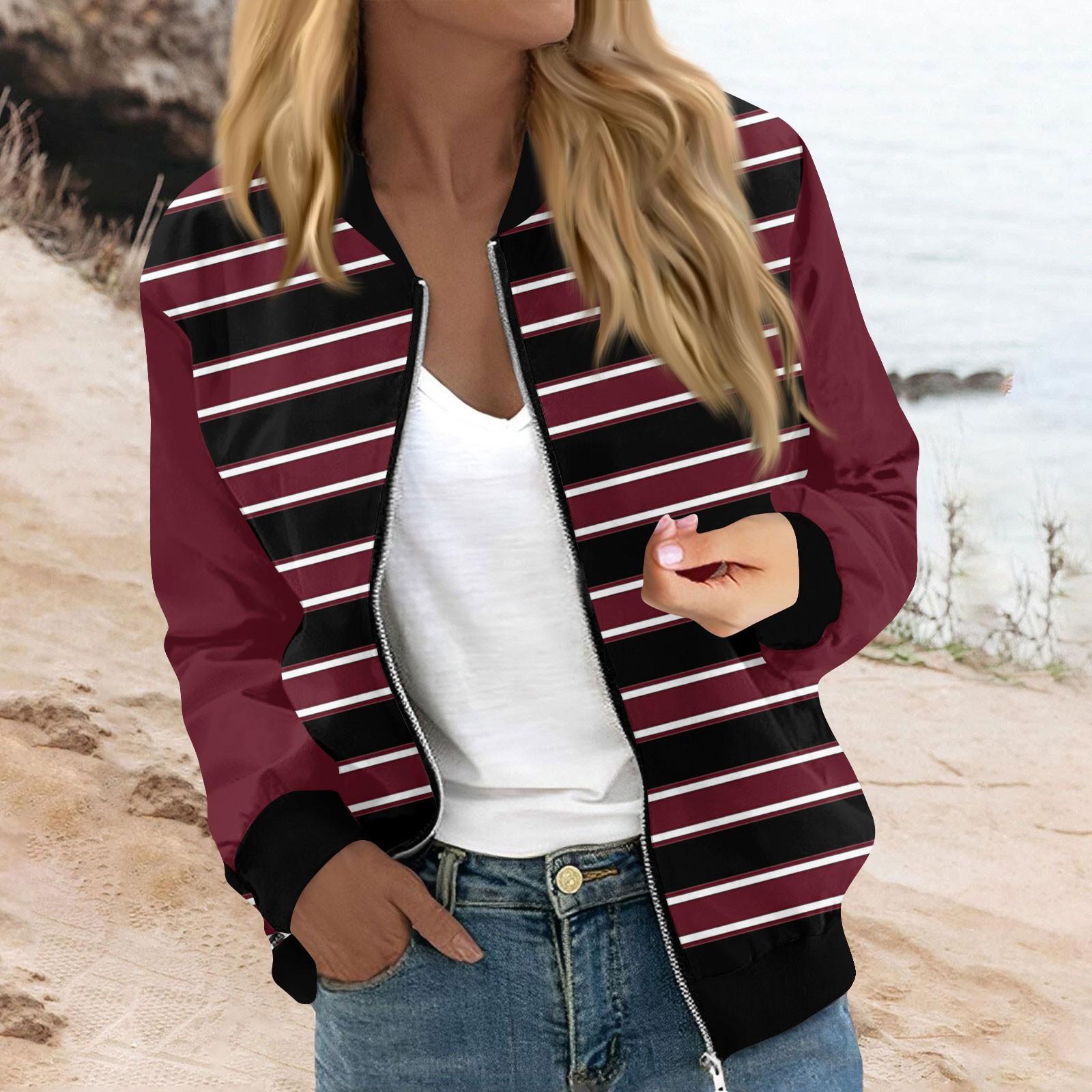 Женская модная повседневная полосатая куртка с принтом в стиле пэчворк на молнии с карманами S