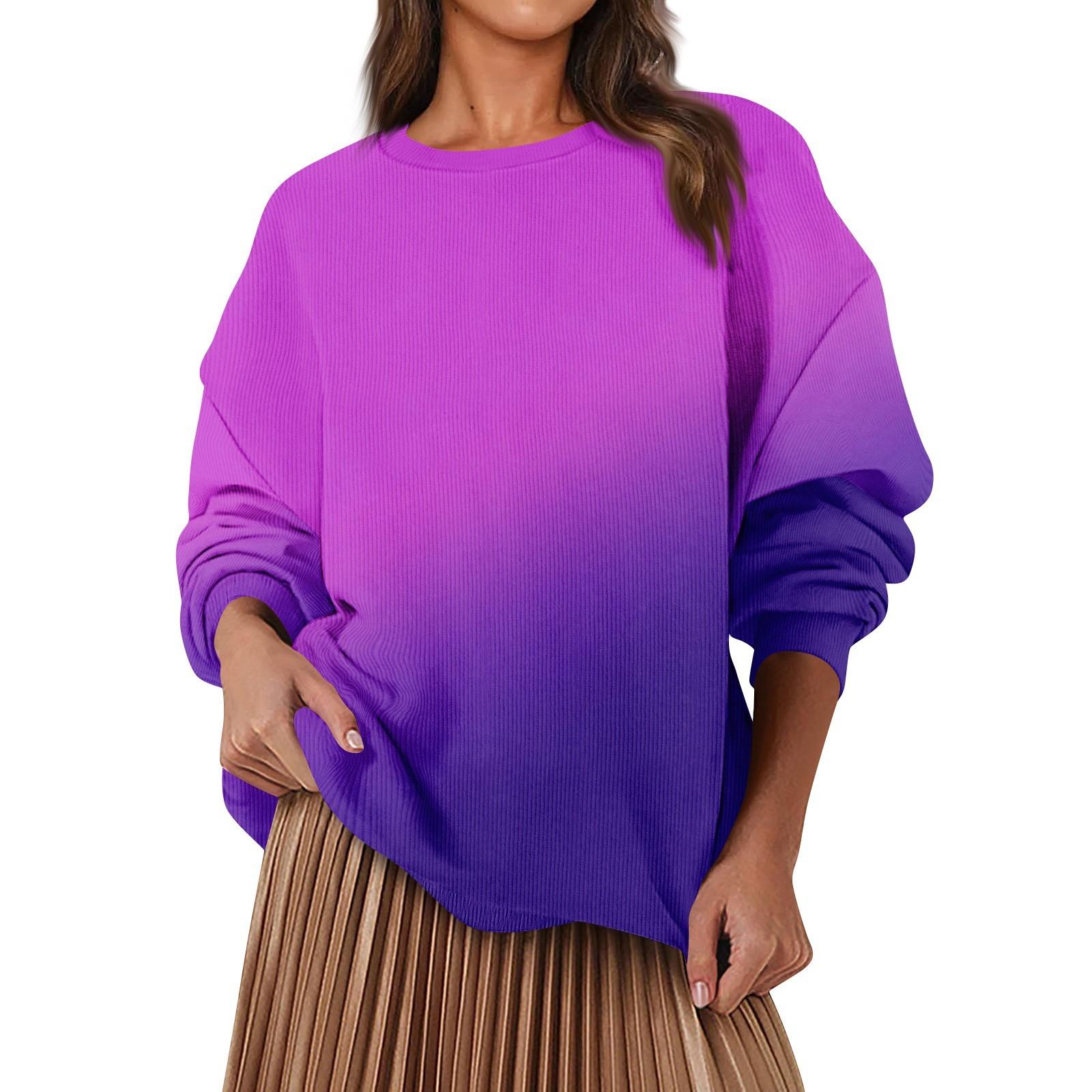 Женская модная повседневная свободная толстовка с круглым вырезом и длинным рукавом с градиентным цветом XXXL фиолетовый