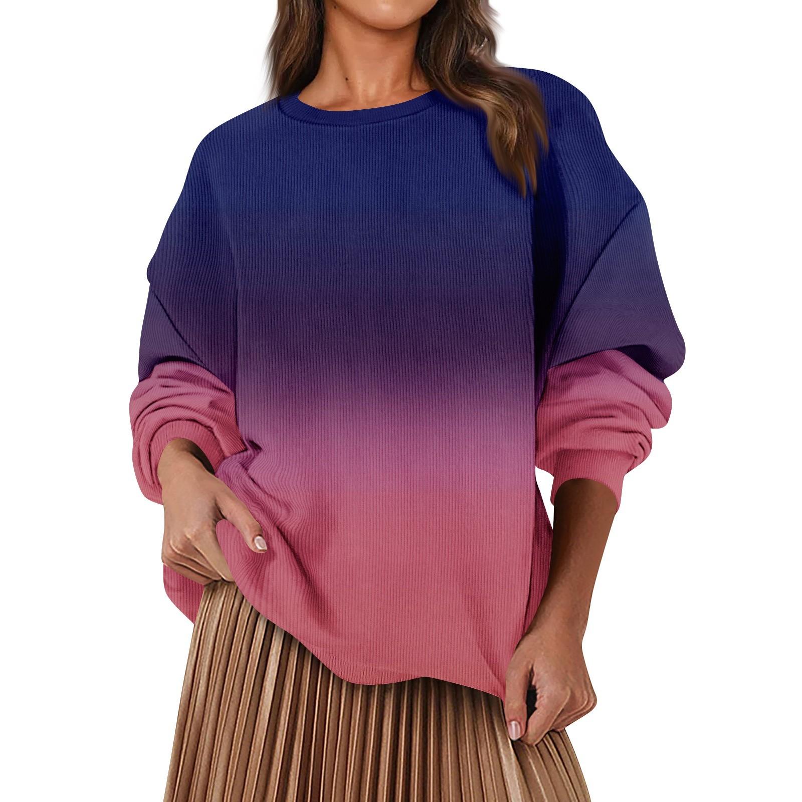 Женская модная повседневная свободная толстовка с круглым вырезом и длинным рукавом с градиентным цветом L