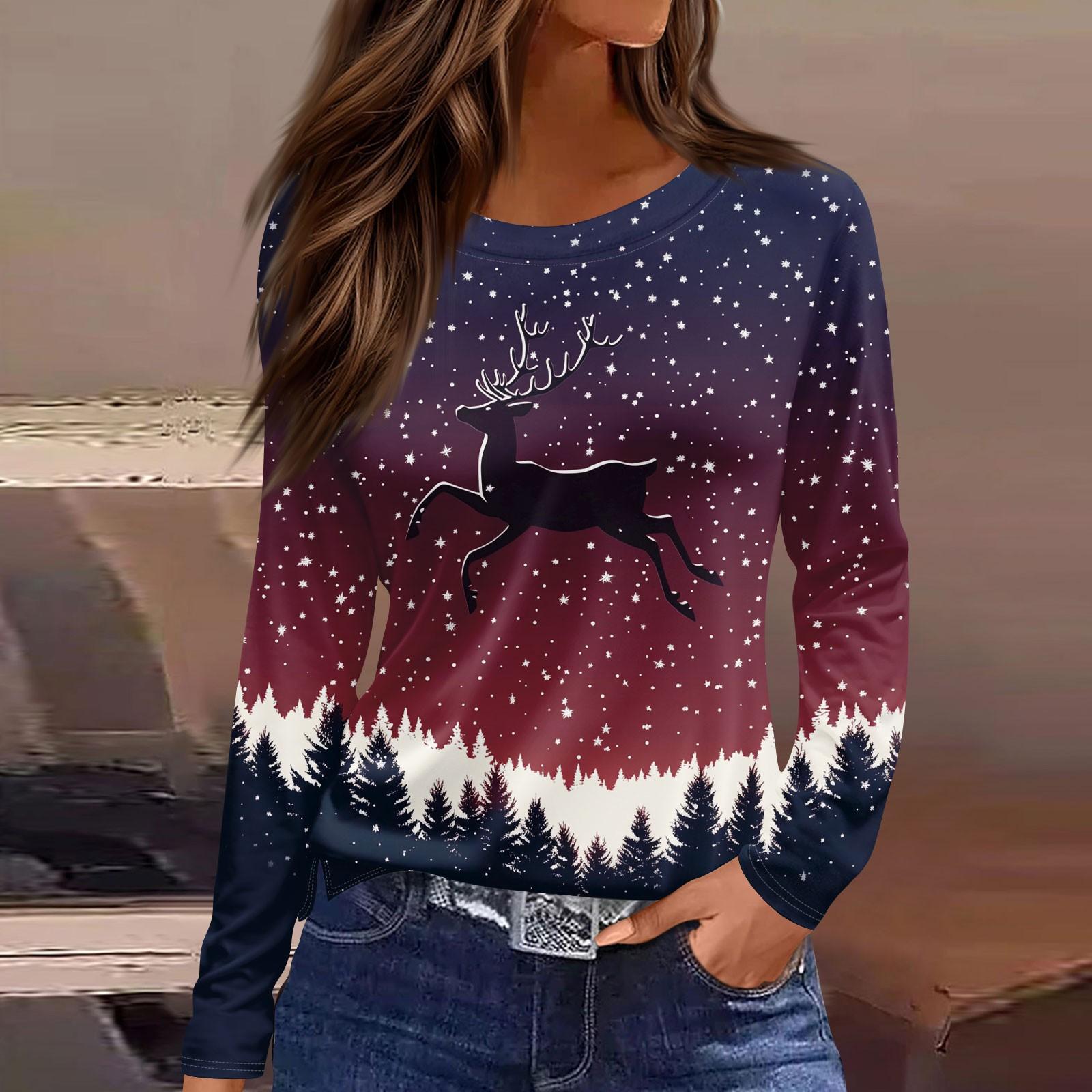 Женская модная повседневная свободная футболка с принтом и круглым вырезом с разрезом и длинным рукавом, женский топ XXXL тёмно-синий