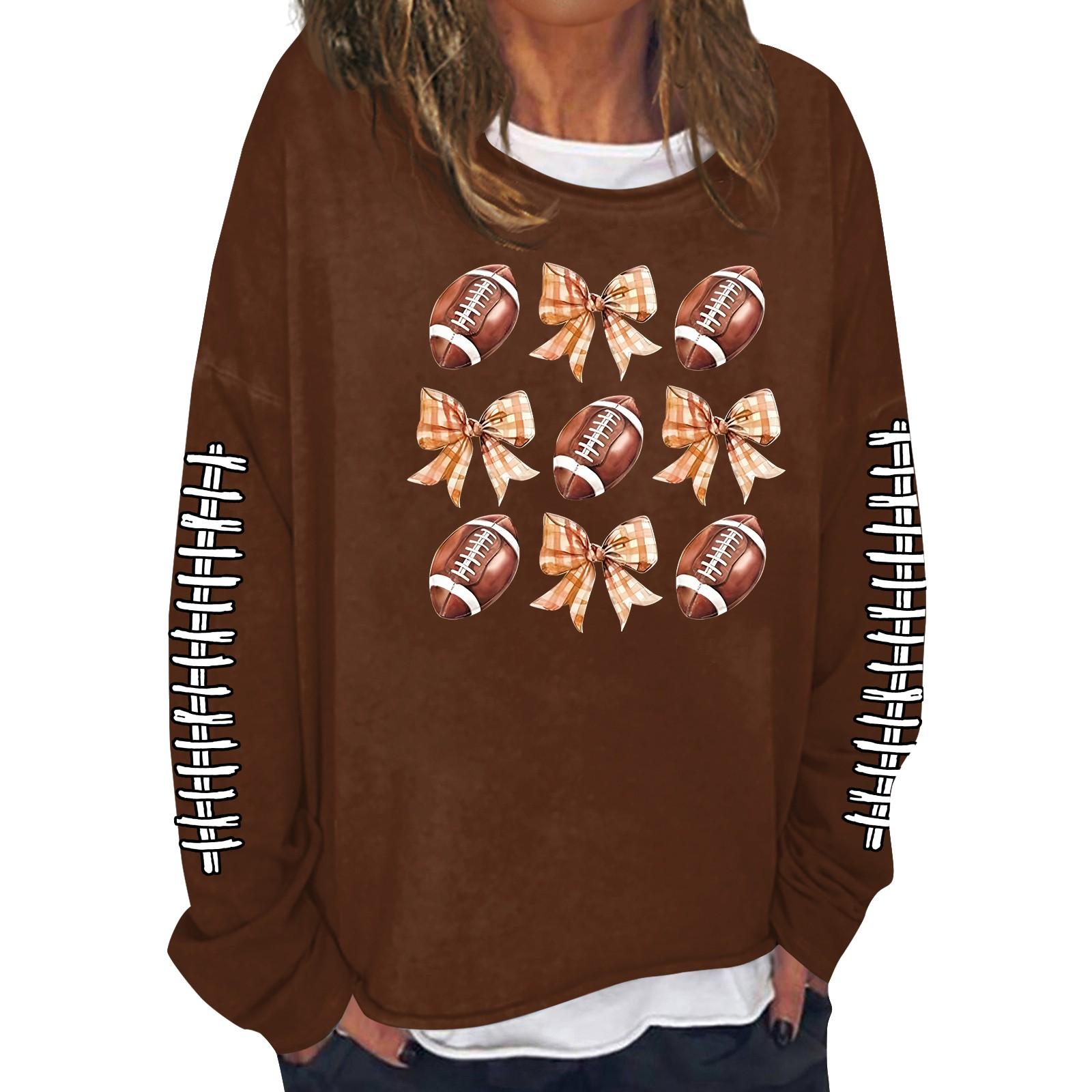 Женская модная повседневная толстовка с длинным рукавом и круглым вырезом с принтом XL кофейный