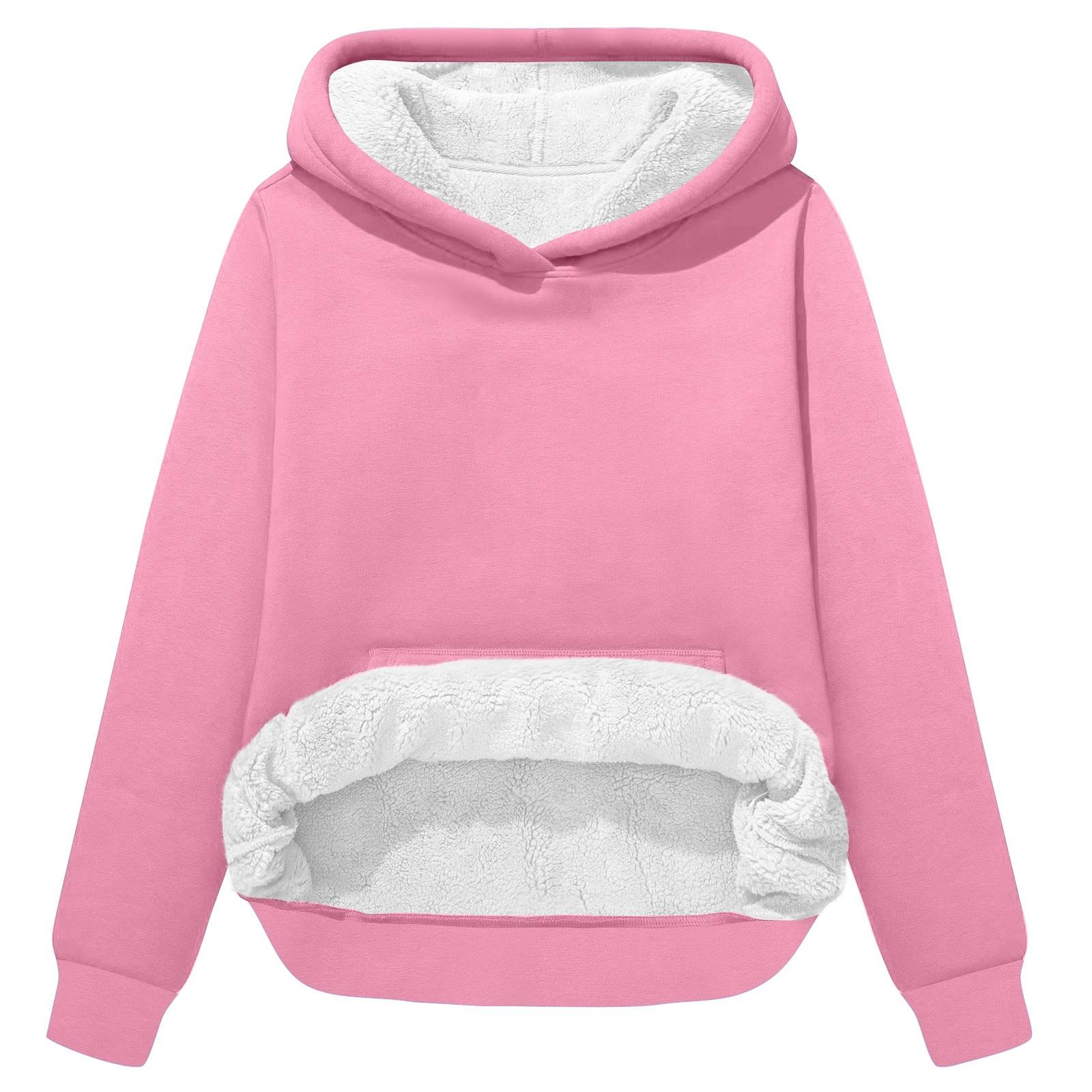 Женская модная повседневная универсальная повседневная бархатная толстовка с капюшоном, длинный рукав, однотонный топ, толстовка XXL розовый