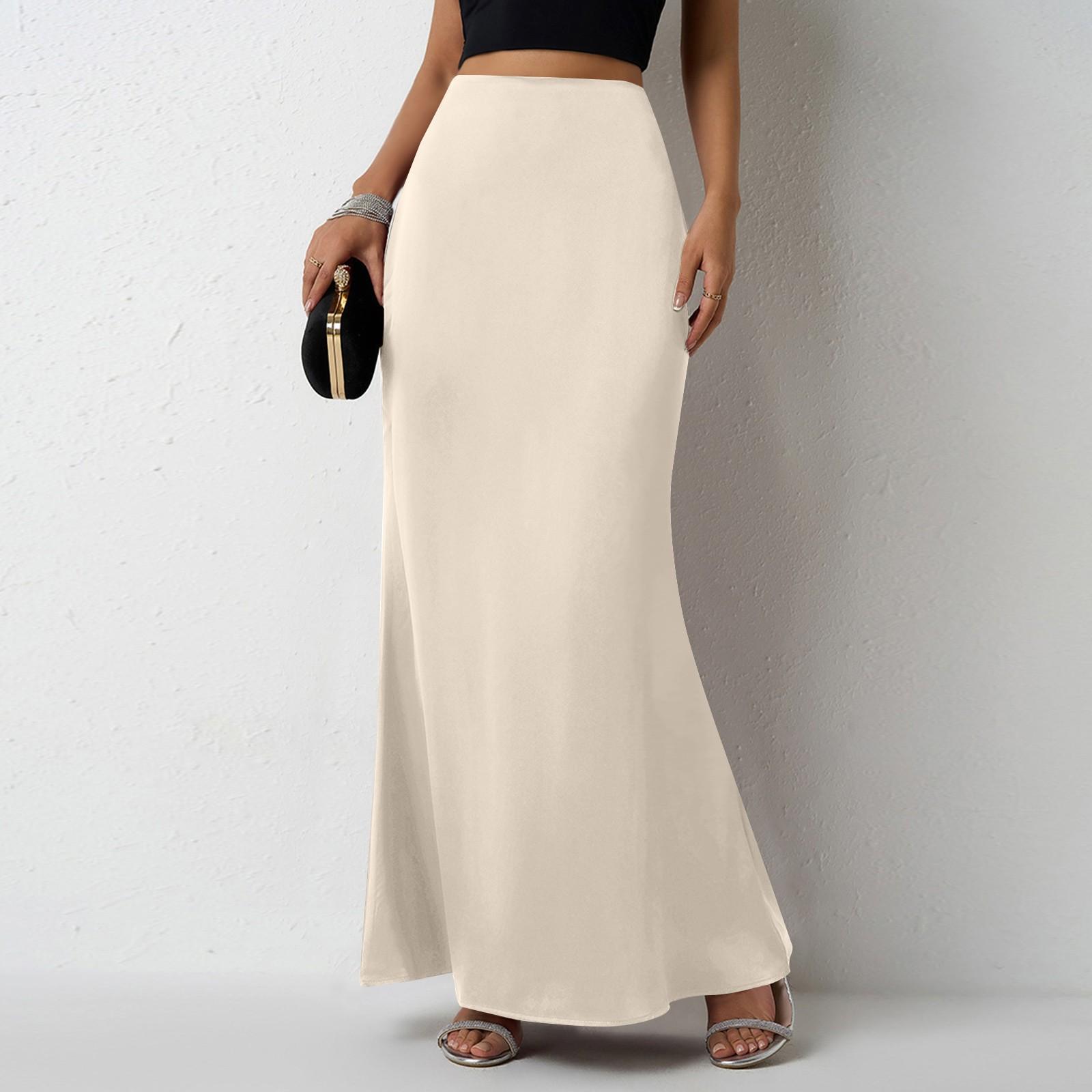 Женская модная и повседневная французская элегантная драпированная атласная юбка L бежевый