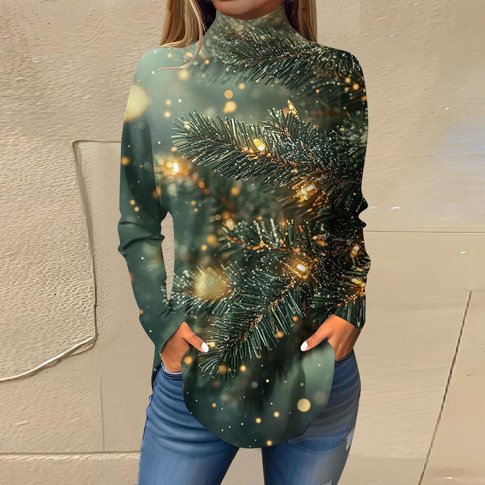 Женская модная повседневная футболка с длинным рукавом с высоким воротом и принтом, пуловер, топ S