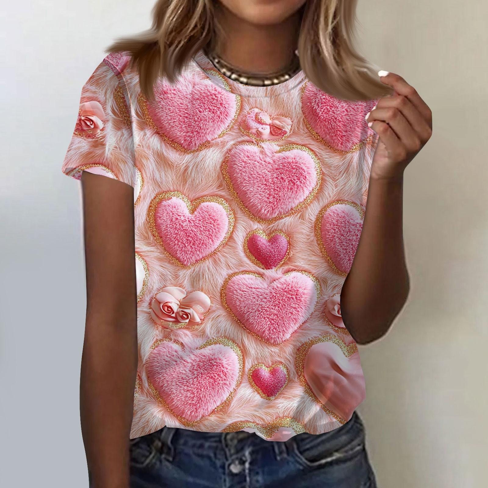 Женская модная повседневная футболка с коротким рукавом и круглым вырезом с принтом ко Дню святого Валентина XL арбуз красный