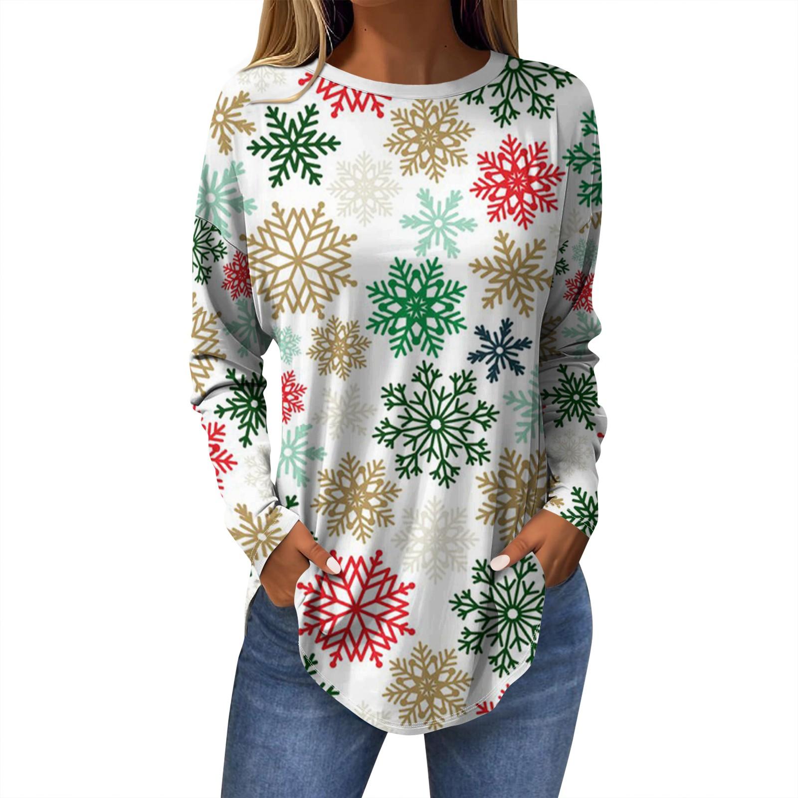 Женская модная повседневная футболка с круглым вырезом и длинным рукавом с рождественским принтом L