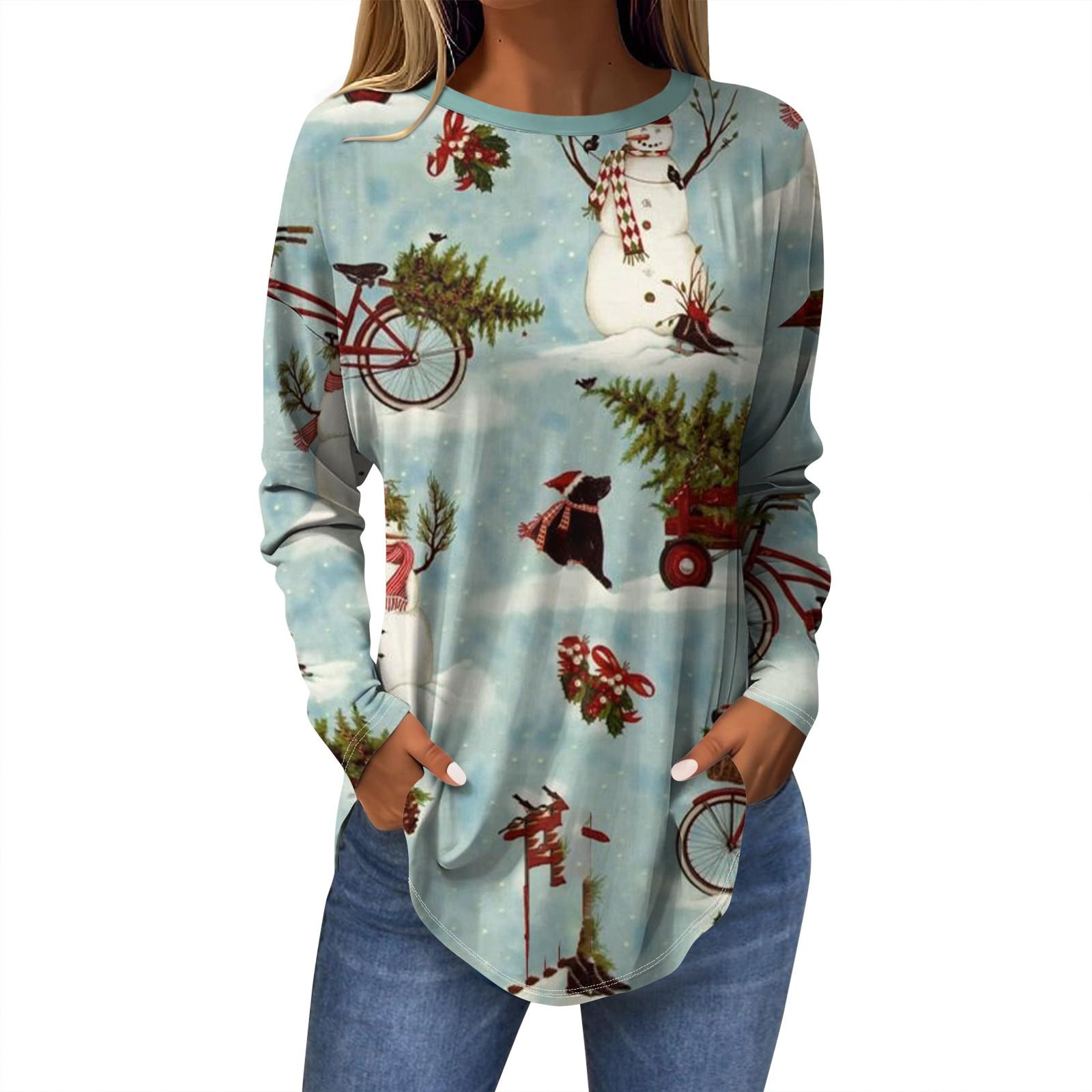 Женская модная повседневная футболка с круглым вырезом и длинным рукавом с рождественским принтом L