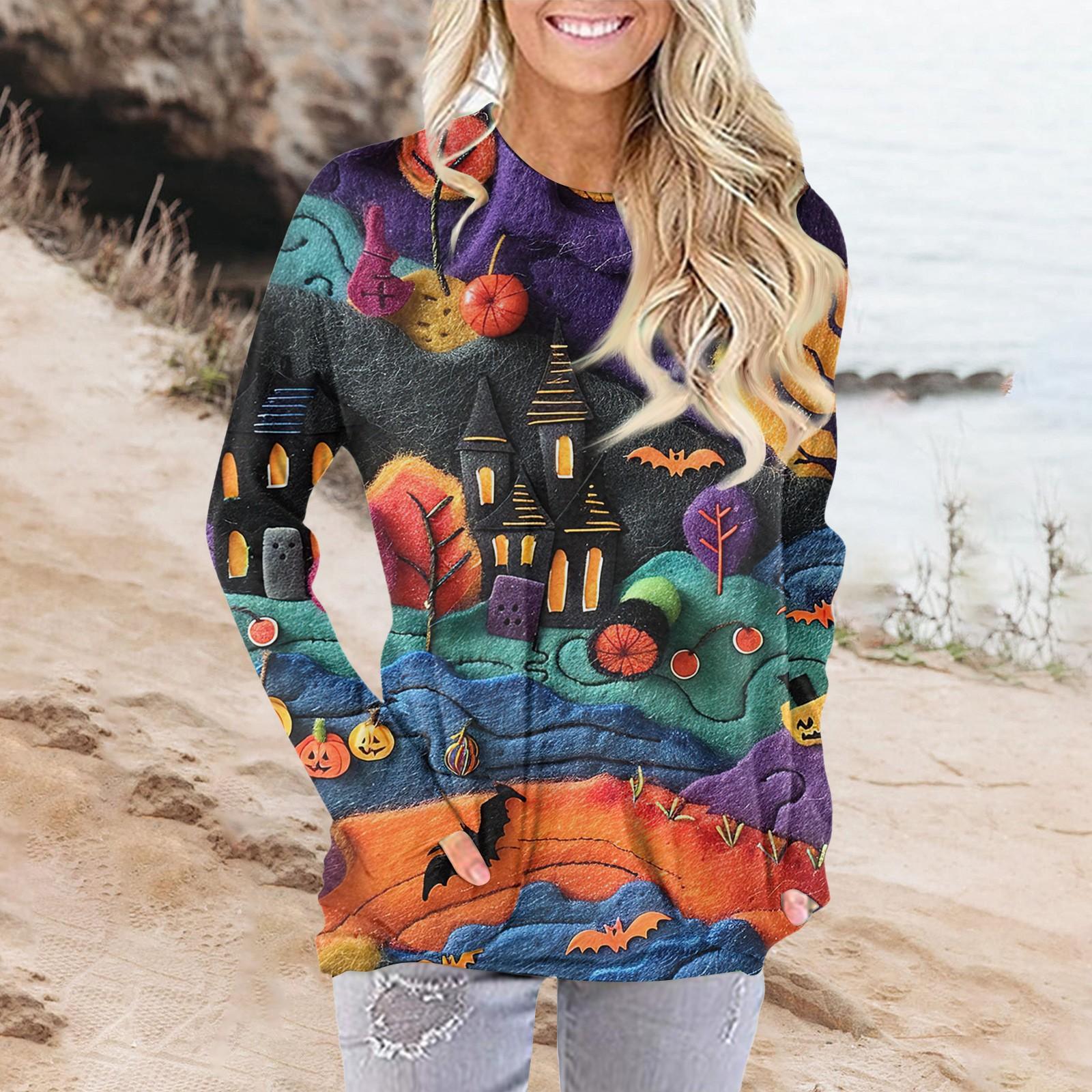 Женская модная повседневная футболка с круглым вырезом и принтом, длинными рукавами и карманами M фиолетовый