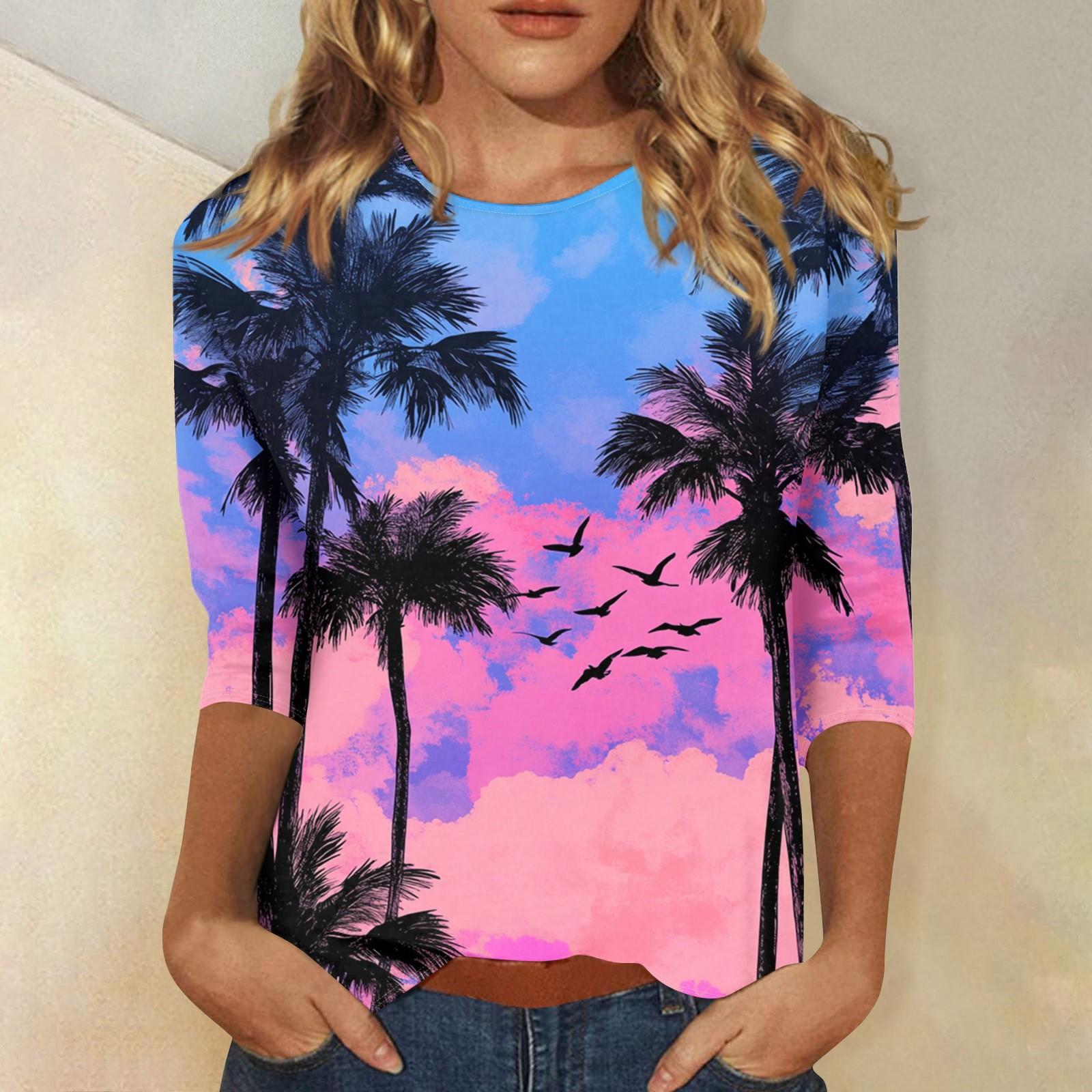 Женская модная повседневная футболка с круглым вырезом и рукавом 3/4, женский топ L
