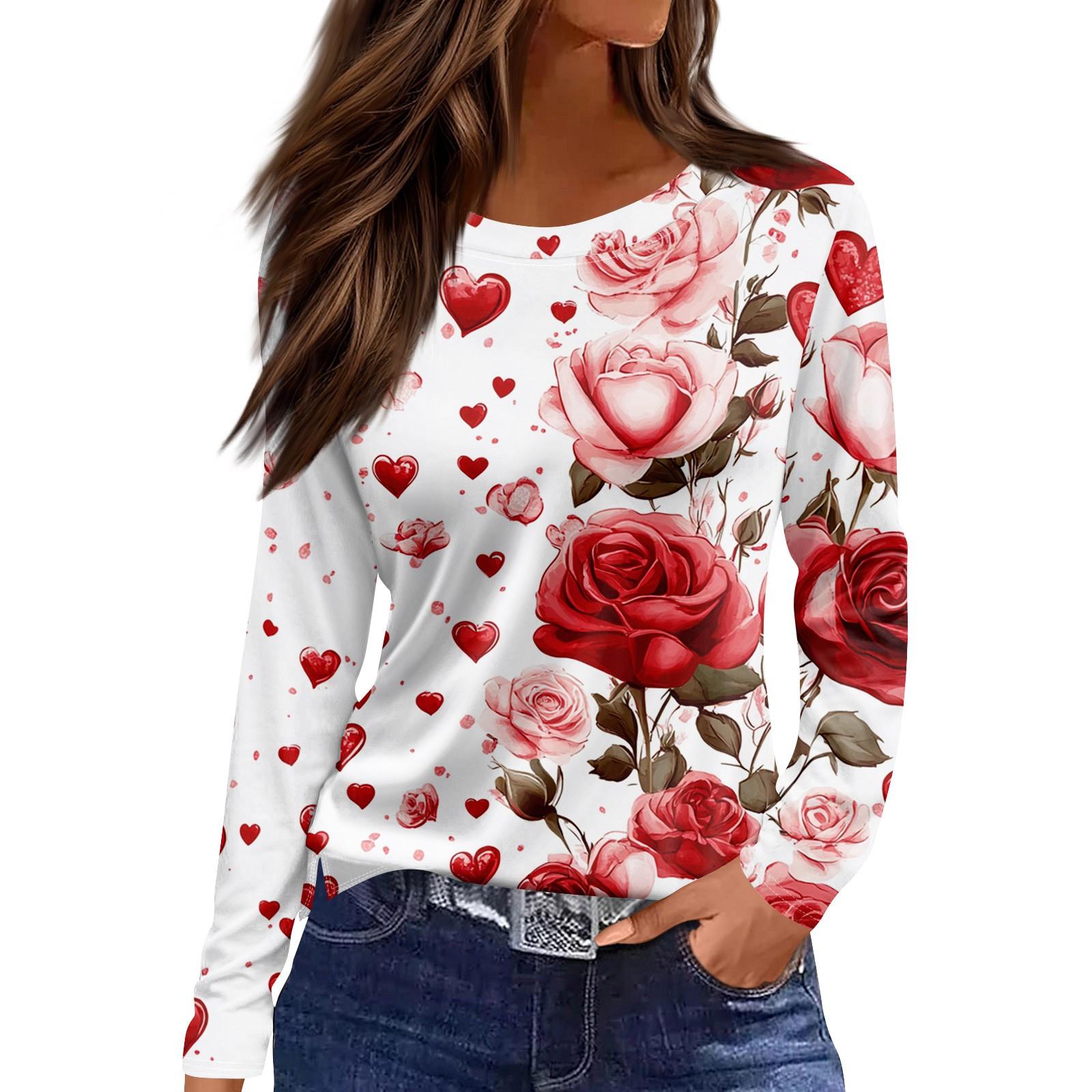 Женская модная повседневная футболка с разрезом и круглым вырезом, длинным рукавом и принтом ко Дню святого Валентина, женский топ XL винный