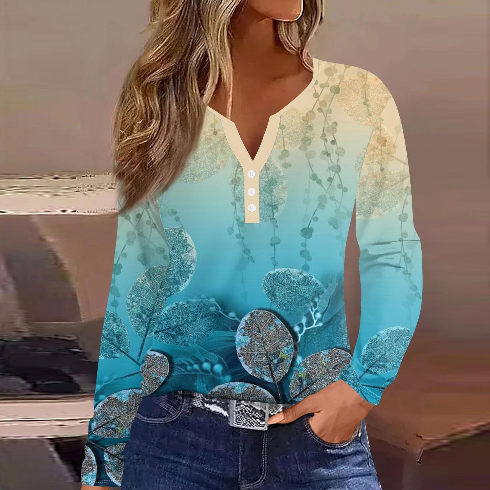 Женская модная повседневная футболка с v-образным вырезом и длинным рукавом с декоративными пуговицами, топ XXXL