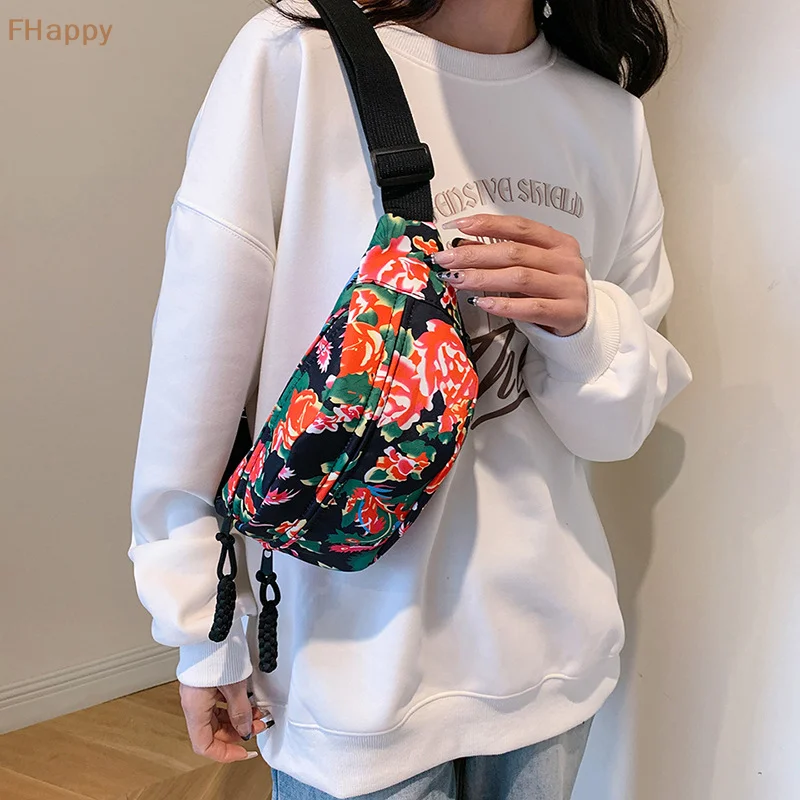 Женская модная поясная сумка, Женская вместительная нейлоновая сумка через плечо с цветами