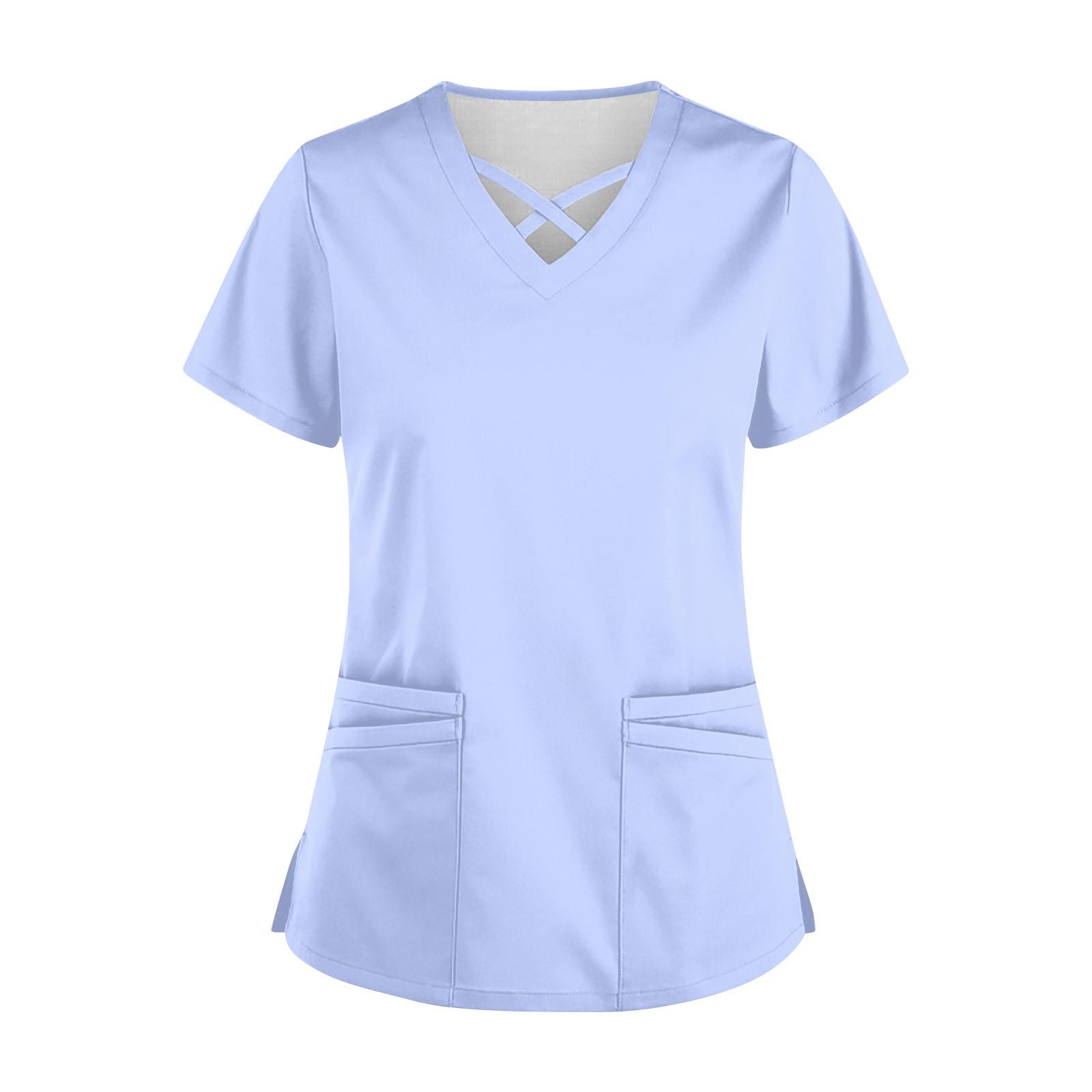 Женская модная рабочая одежда с v-образным вырезом и короткими рукавами, однотонные топы с завязками и карманами и защитная одежда L
